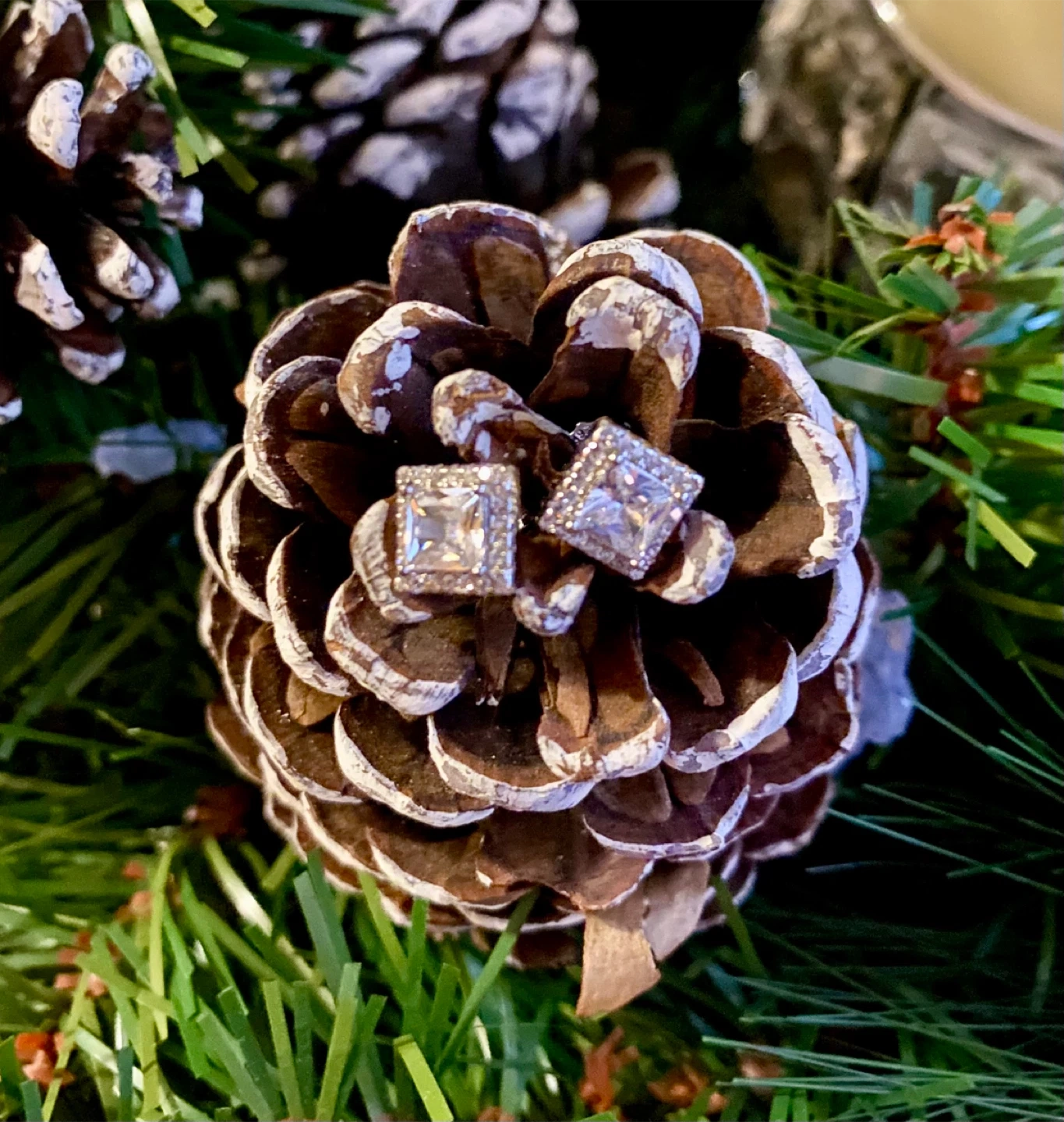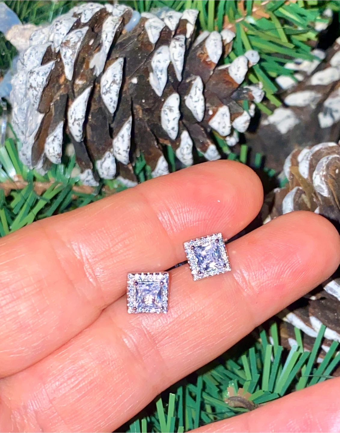Sparkling square halo stud earrings. They're set with clear cubic zirconia stones in a silver-toned metal. A classic choice for everyday wear or special occasions!