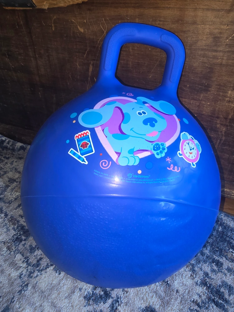 Get ready to bounce with this fun Hedstrom hopper ball featuring Blue's Clues! This blue hopper ball is perfect for kids who love to hop and play. It's in great condition and ready for a new home!