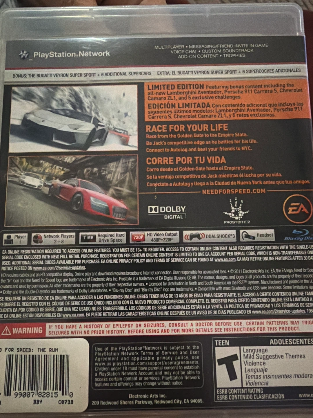 This is the Limited Edition of Need for Speed: The Run for Playstation 3. It includes exclusive bonus content. The game is rated T for Teen.