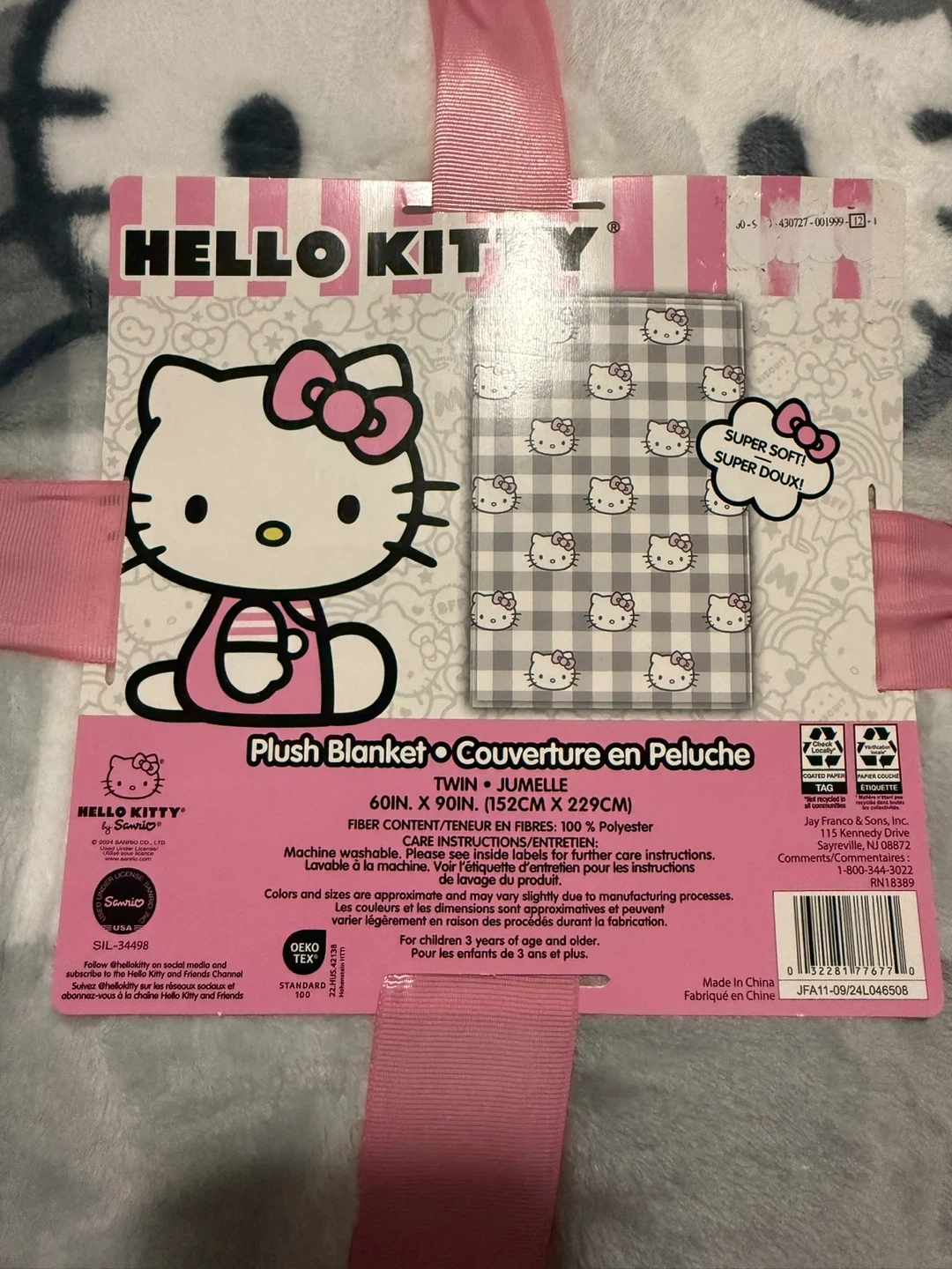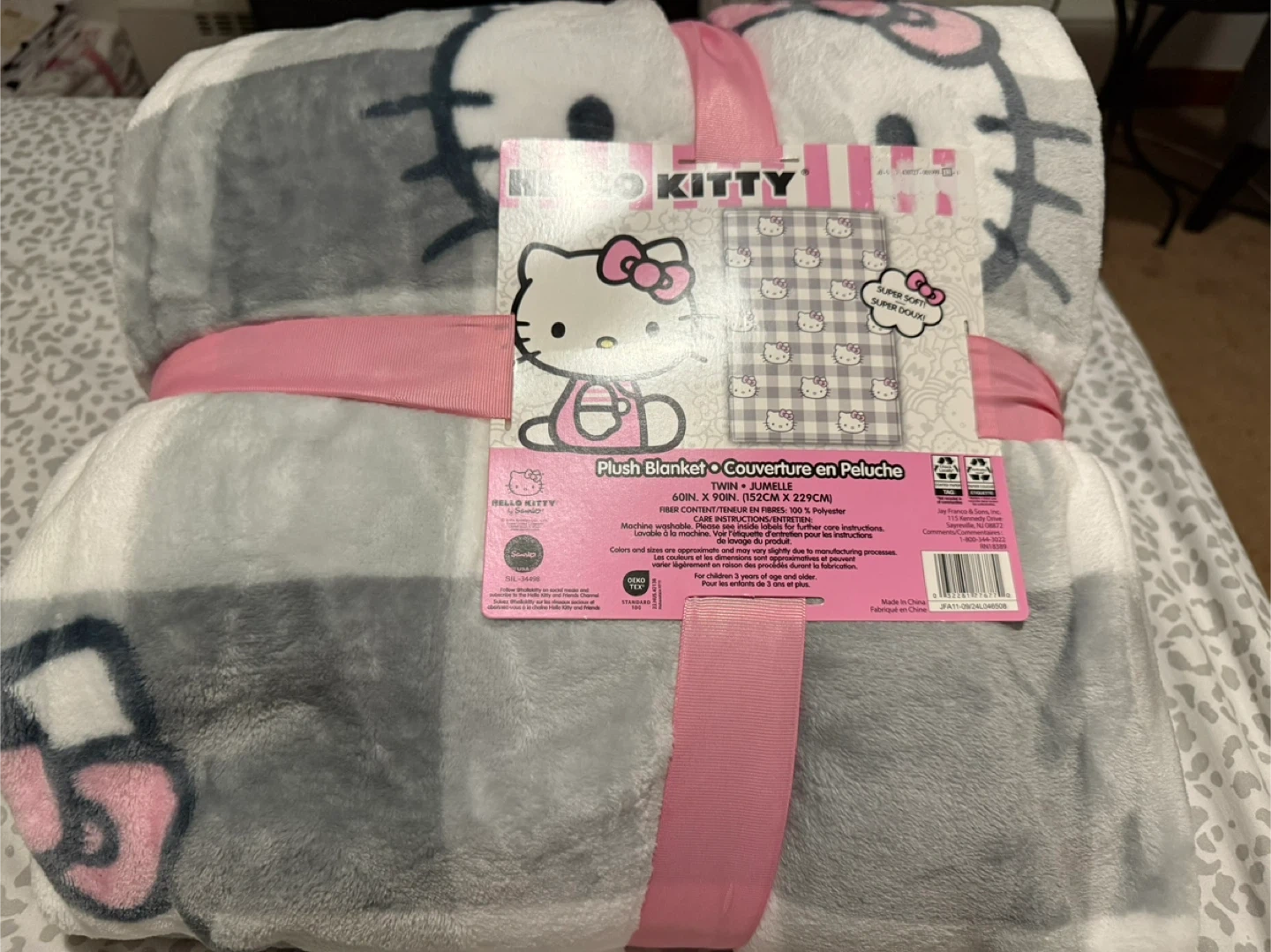 Brand new Hello Kitty Twin Plush Blanket! It's super soft and cozy! - Size: 60in x 90in (152cm x 229cm) - Fiber Content: 100% Polyester - Suitable for ages 3 and up
