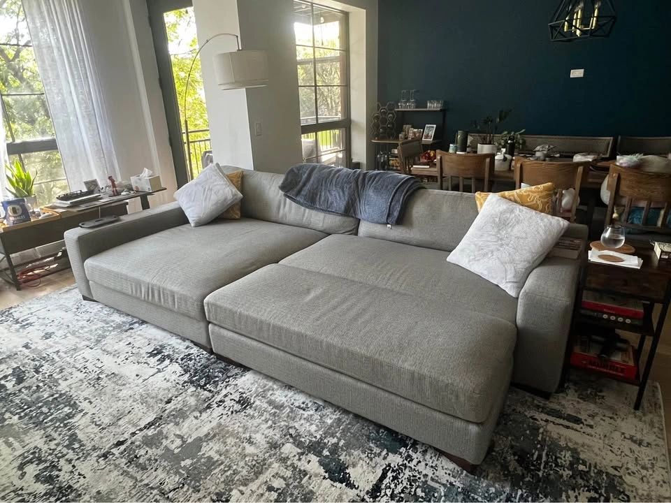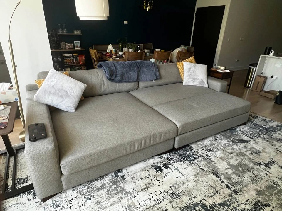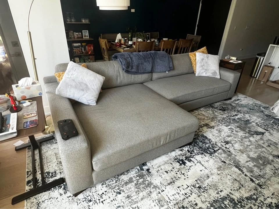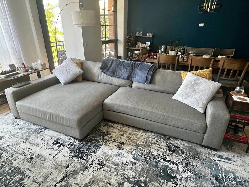 Selling our Hendley Fabric Sectional with Ottoman, originally purchased from Costco for $1,699. Asking Price: $700 Condition: Excellent – gently used for 4 years, no pets, non-smoking home. Features: Comfortable seating, includes matching ottoman, neutral fabric that fits any living space. Perfect for a living room or family room — lots of seating, stylish, and very cozy! Pickup in Wicker Park, Chicago.
