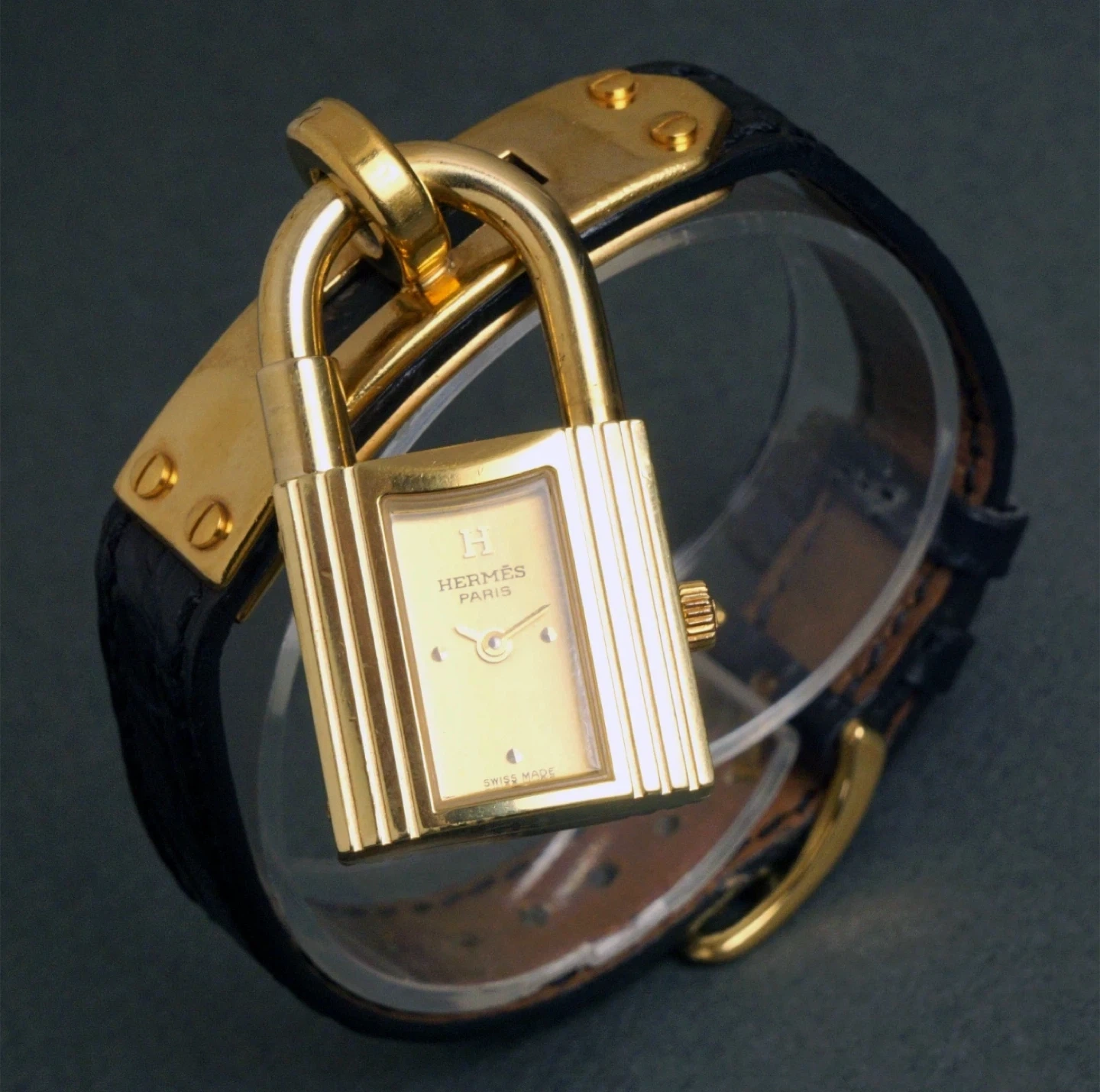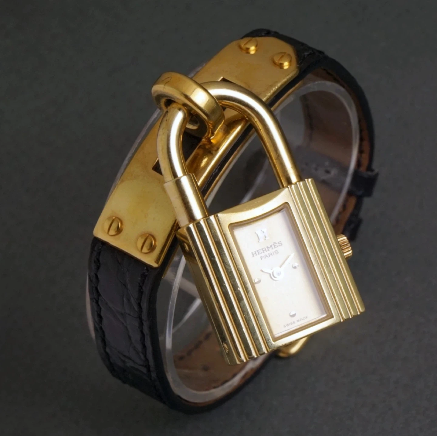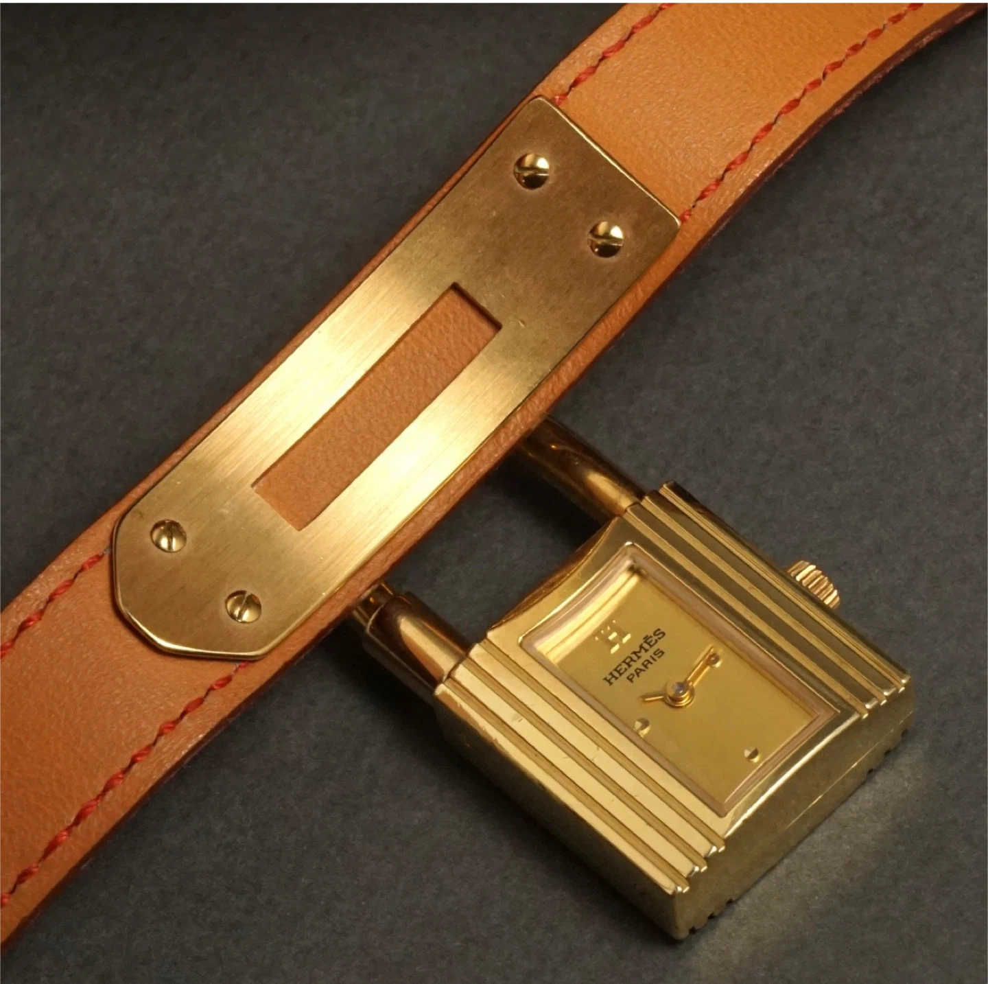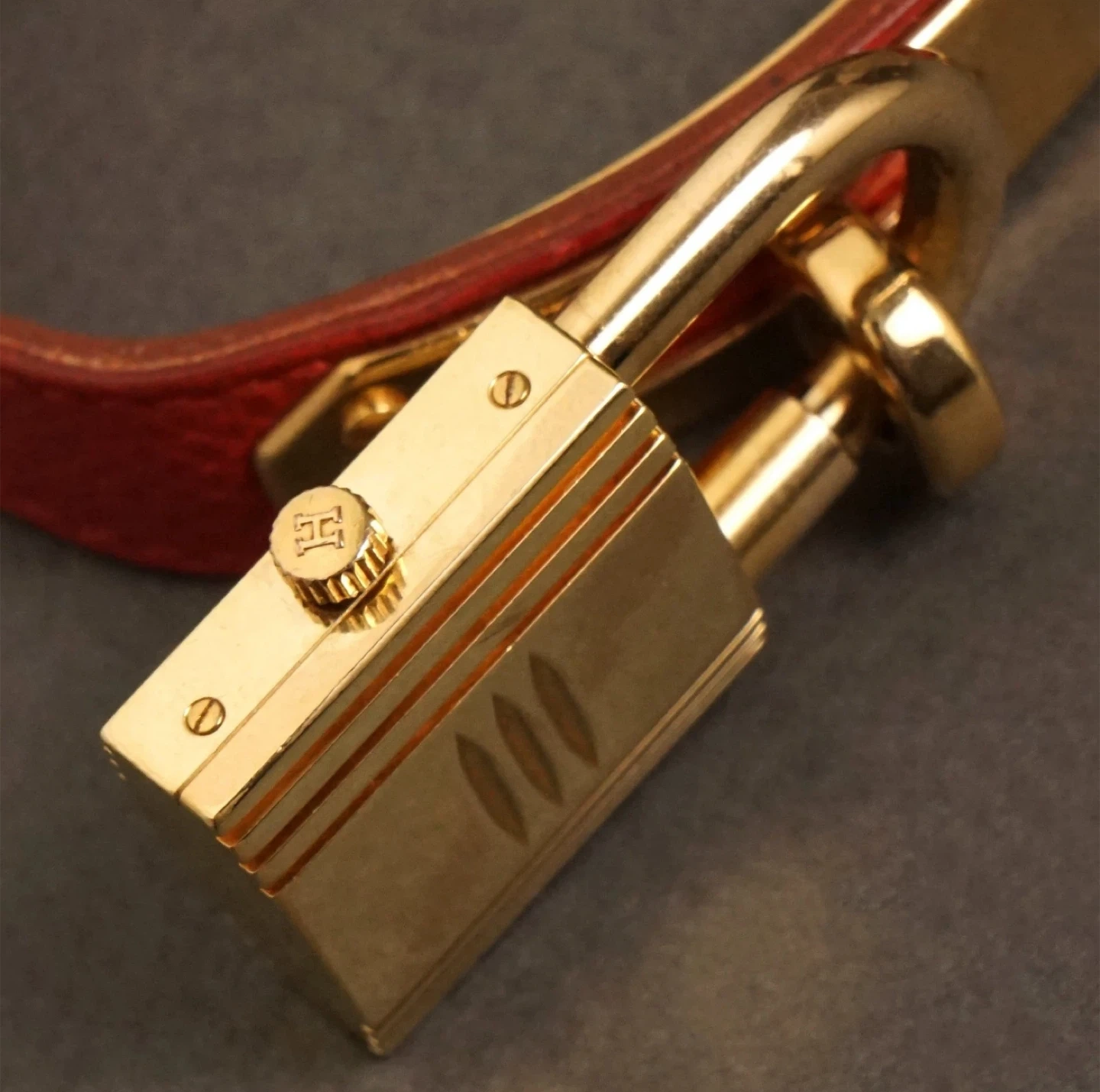Selling a beautiful Hermès Paris Kelly watch with interchangeable red and black leather bands. The watch features a gold-tone padlock case and a classic design. It's a stylish and iconic accessory!