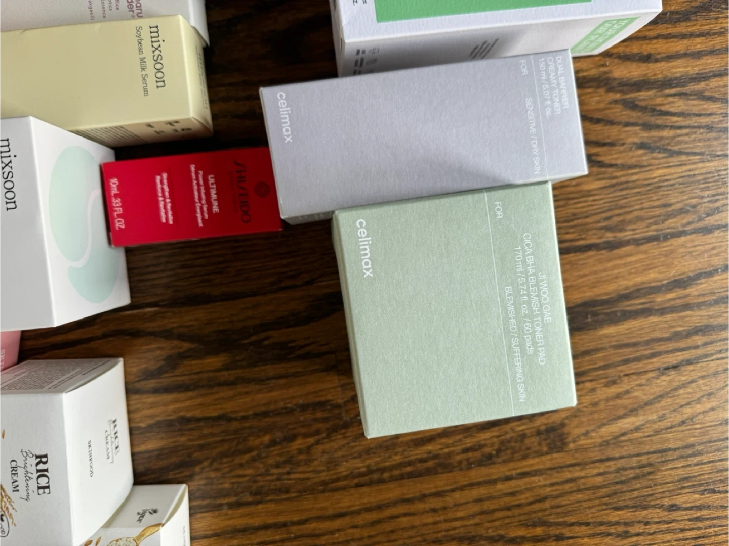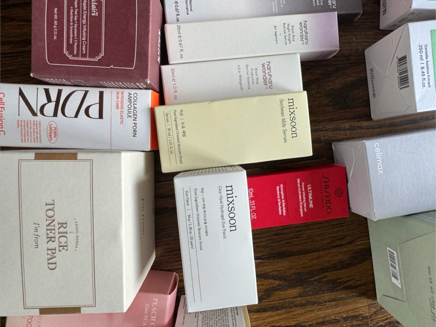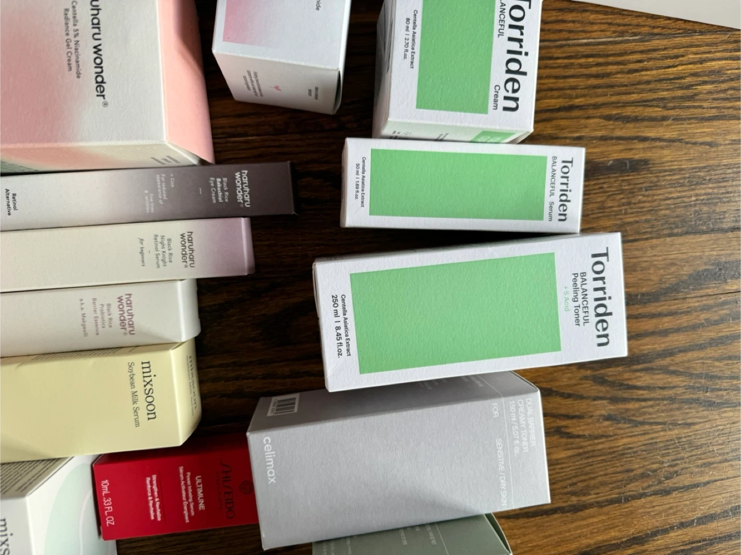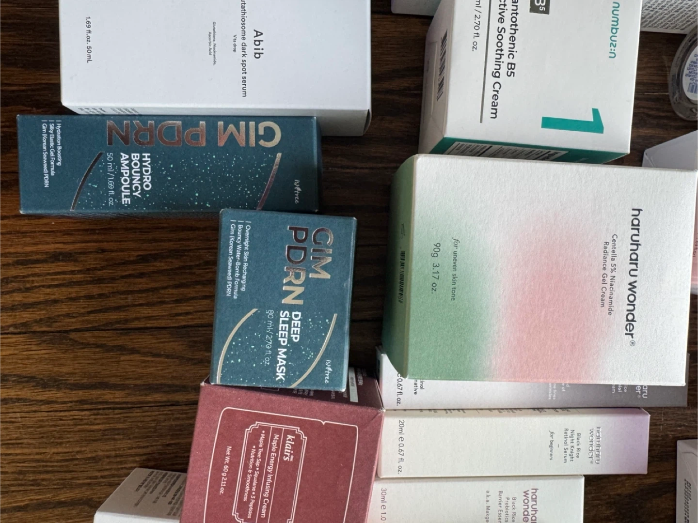 A selection of various Korean skincare products including toners, serums, creams, and masks. Includes items from brands like COSRX, Abib, Manyo, Frudia, Torriden, and Celimex..
