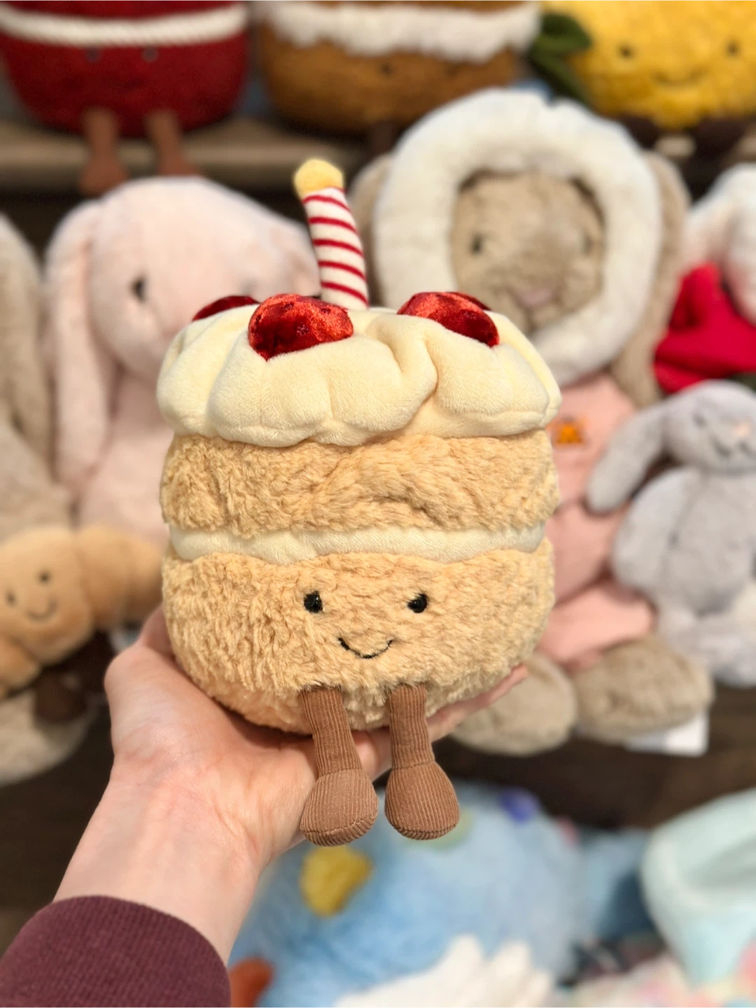 The perfect birthday gift! Selling a brand new with tags (BNWT) authentic Jellycat Birthday Cake. Features a cute "lit" candle and colorful embroidered sprinkles.