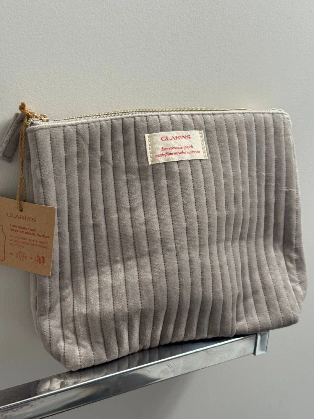 New, unused Clarins cosmetic pouch with two skincare minis — perfect to try the products or for travel.