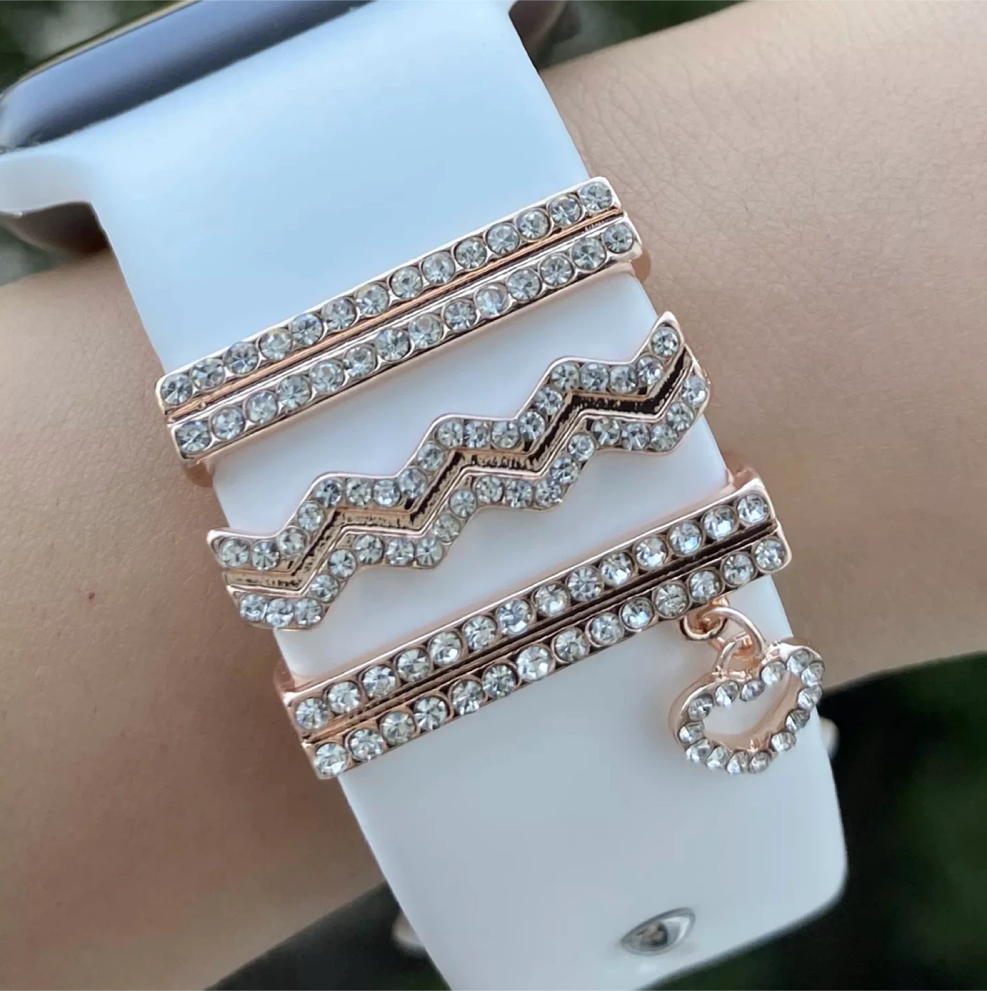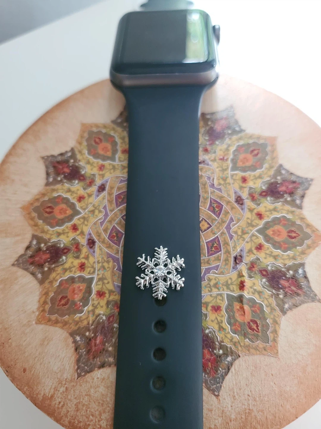Add some sparkle to your Apple Watch band with these decorative charms! These charms feature Mickey Mouse ears, snowflakes, and heart designs. They're easy to attach and remove, letting you customize your look. These make a fun accessory for anyone who loves Disney or a touch of winter flair! Button like charms are $7/each. Slide on and sets are $15 each. *Watch nor watch band are for sale*