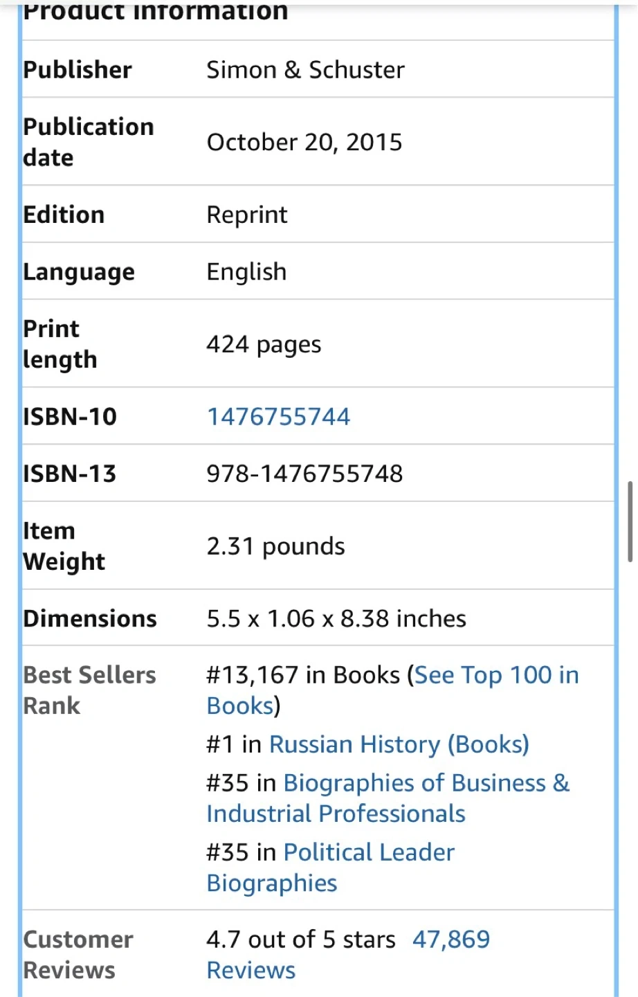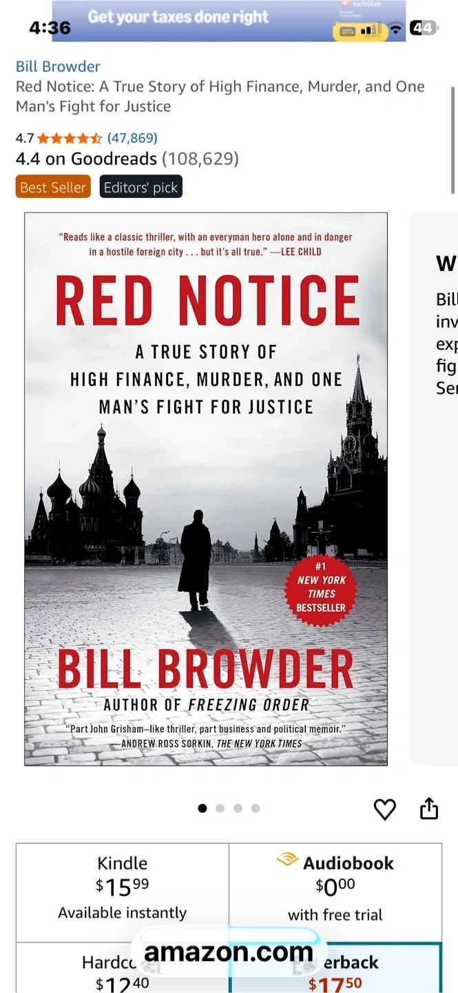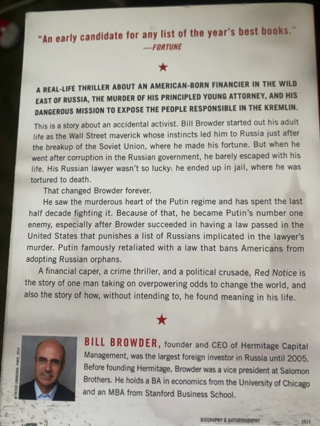This is Bill Browder's true story about accidental activism, corruption in the Russian government, and his fight for justice. It's a gripping account of financial dealings and political intrigue. The book is 424 pages long. This paperback edition was published on October 20, 2015.