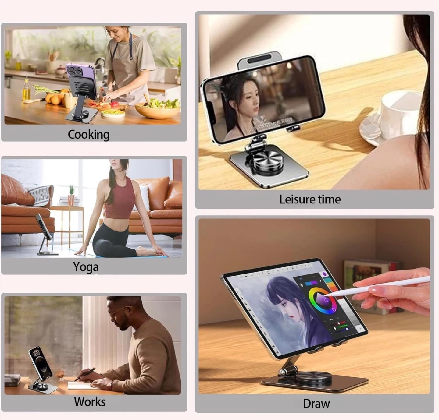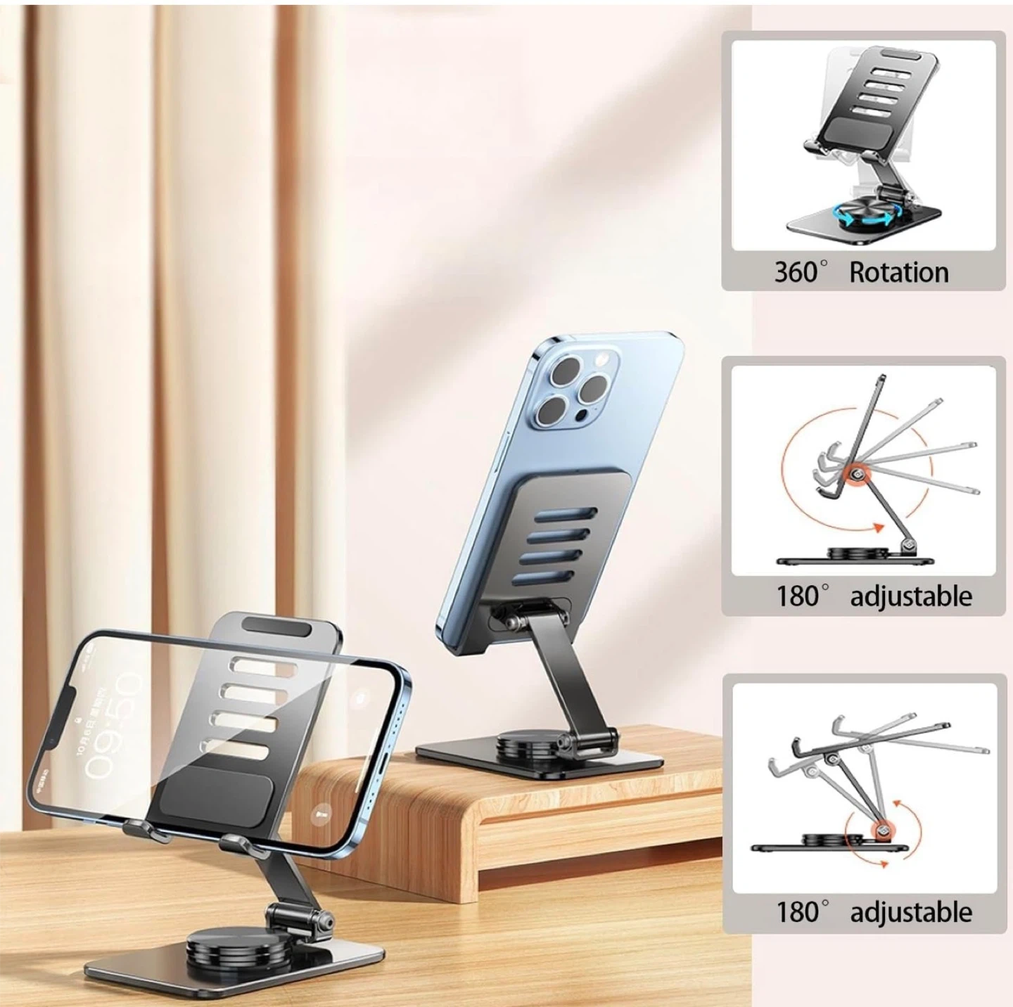 360° Rotating Foldable Cell Phone & Tablet Holder, Multi-Angle Adjustable Portable Mobile Phone Stand Compatible with All Smartphones, iPhone 17 1615 14 13 Pro, iPad, Tablet 4-11''