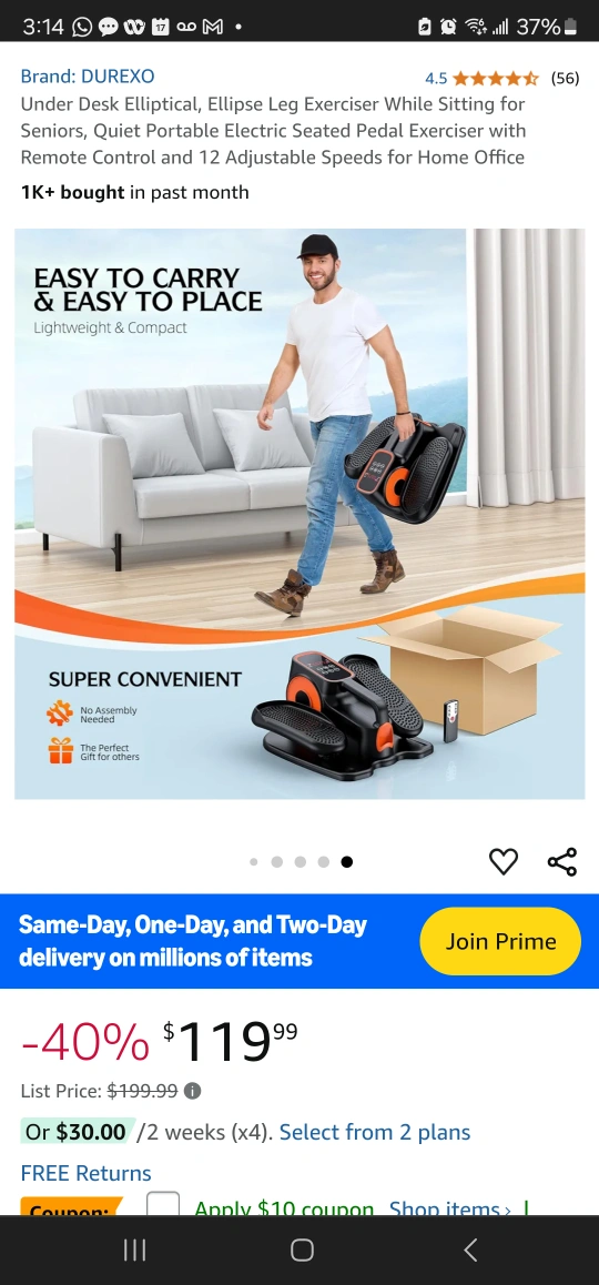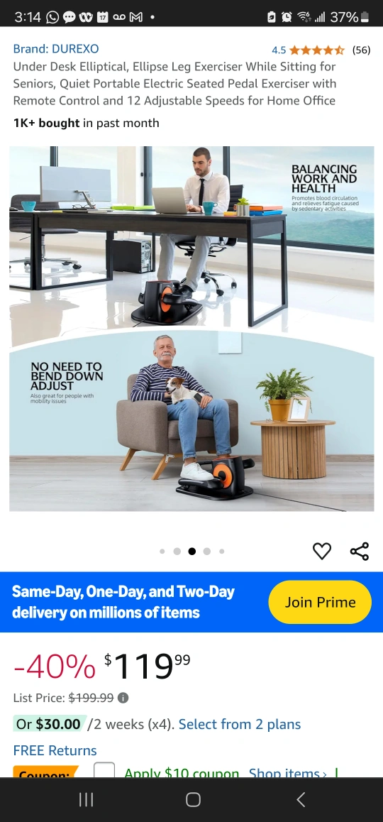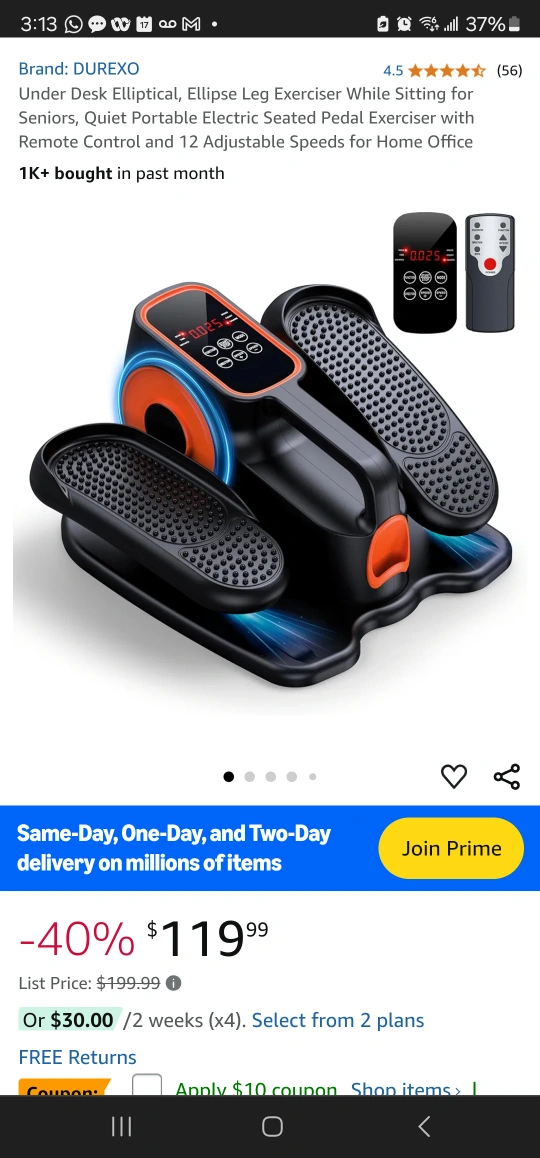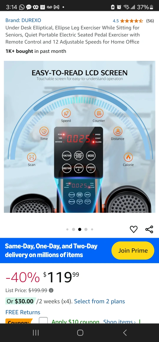 Electric seated pedal exerciser with remote control and 12 adjustable speeds for home office use. Quiet operation. LCD screen displays speed, time, distance and calories burned.