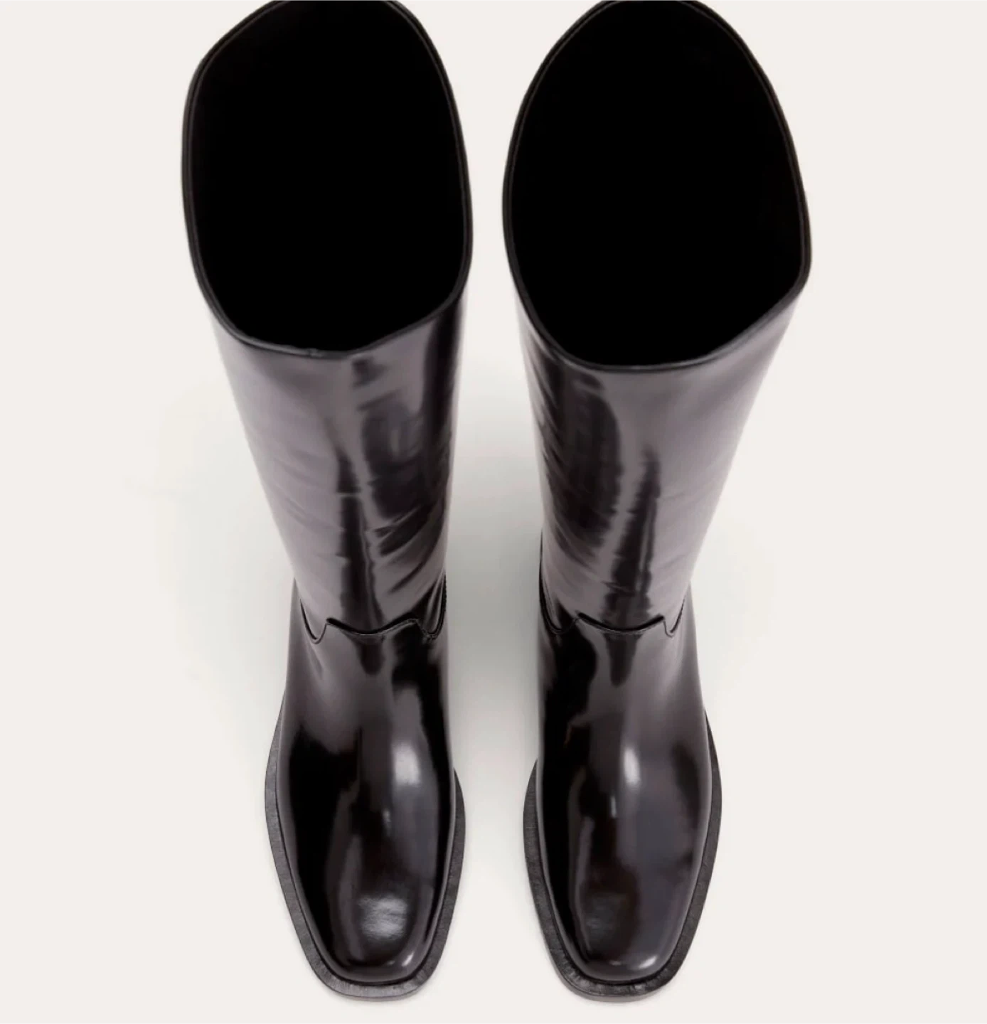 This piece features a soft, square toe, welt detailing, pull-on knee-high length with a padded insole in thick, premium sourced LWG-certified leather. Polished leather offers a sleek and sophisticated urban equestrian look. A top pick of the season on Who What Wear. A timeless style as seen on the likes of Kate Middleton and Angelina Jolie, that will carry you through many seasons.