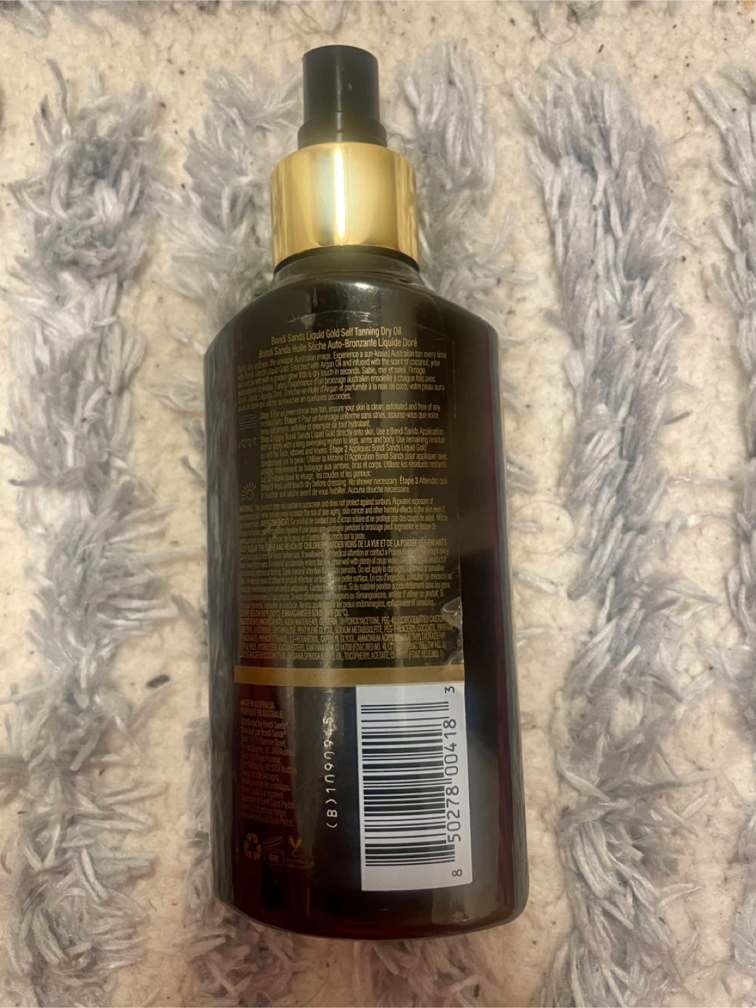Bondi Sands Liquid Gold Self Tanning Dry Oil in a 150mL bottle. This self-tanning dry oil gives your skin a beautiful bronze glow. It's lightweight and absorbs quickly for a natural-looking tan.
