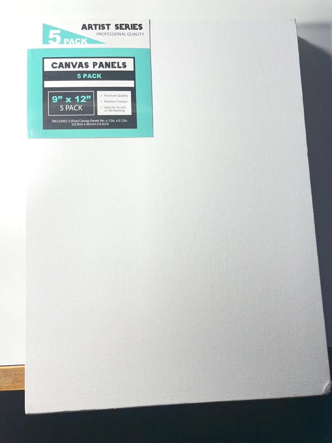 Selling a pack of 5 Artist Series canvas panels. Each panel measures 9" x 12" and are ideal for acrylic or oil painting. They have a premium quality medium texture. Perfect for your next art project!