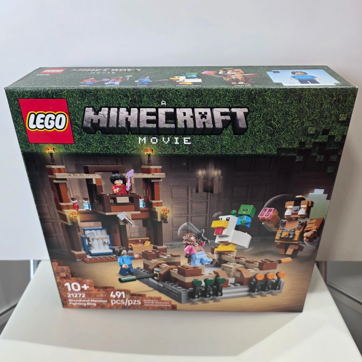This LEGO set features The Sword and the Shield Fighting Ring from Minecraft. It includes 491 pieces for building. Recommended for ages 10 and up.