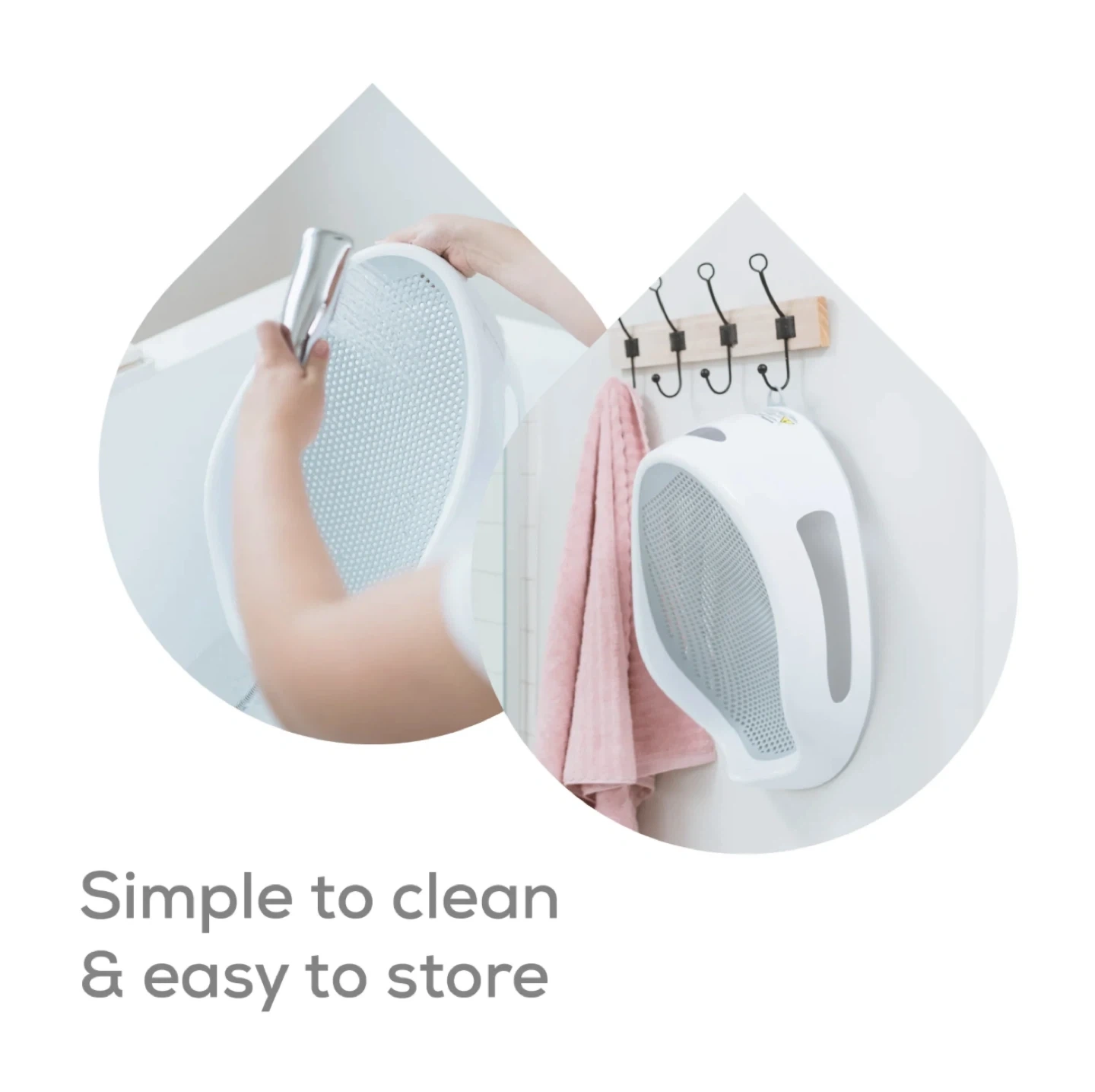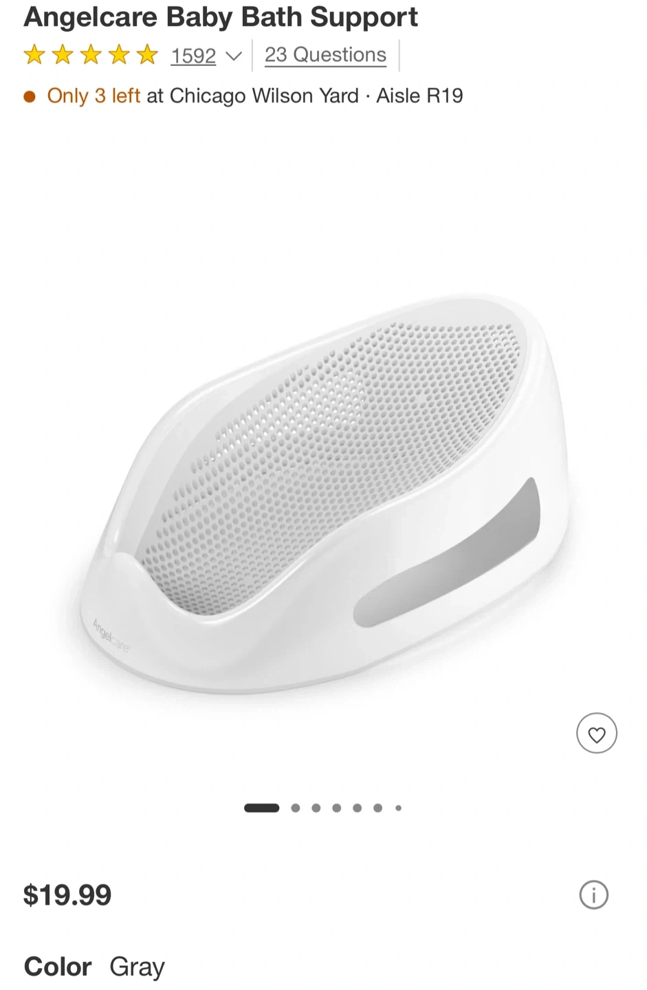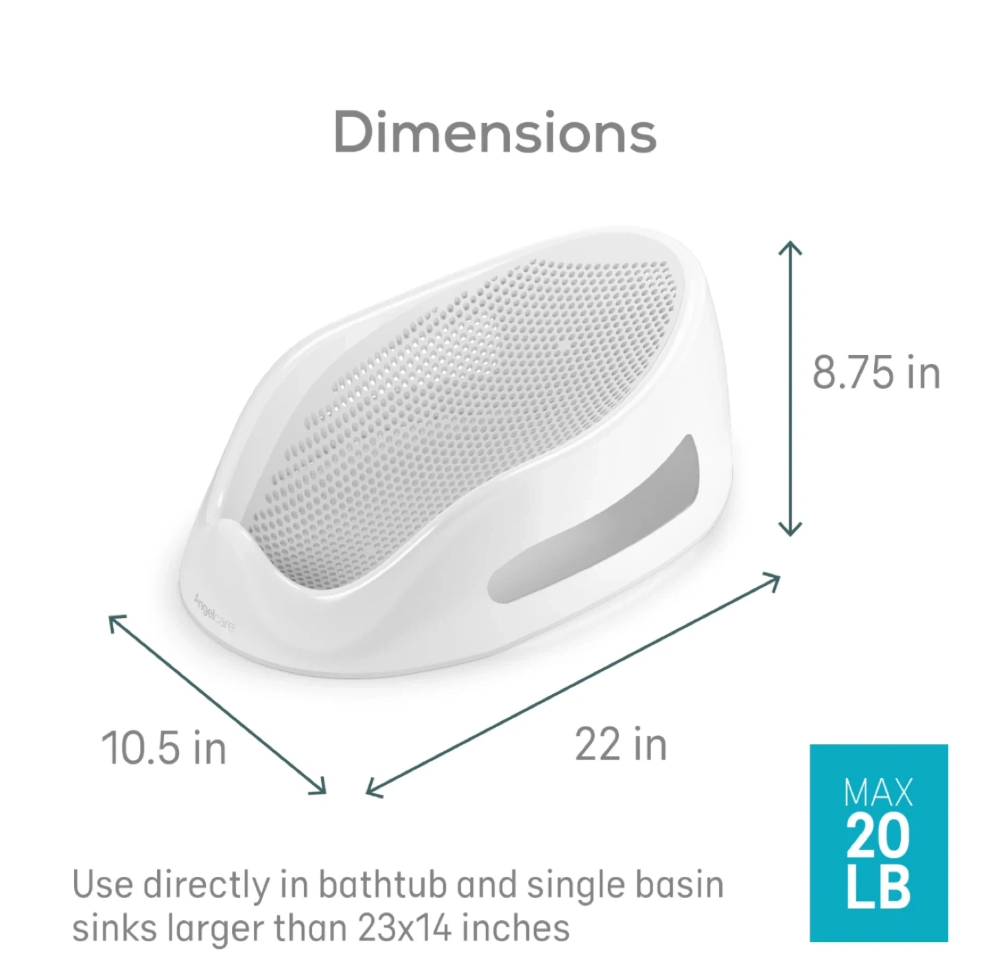 I'm selling an Angelcare Baby Bath Support in gray! It's designed for newborns up to 6 months old, or up to 20 lbs. It can be used directly in bathtubs and single basin sinks larger than 23x14 inches. The dimensions are 10.5 in x 22 in x 8.75 in. Originally bought for $19.99