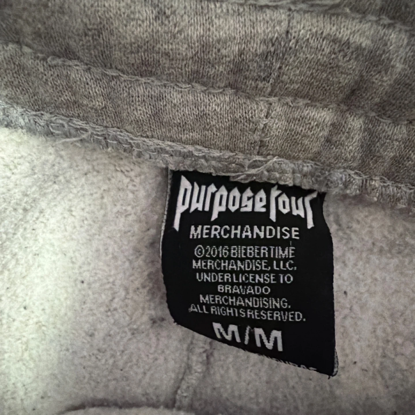 Grey sweatpants from Justin Bieber Purpose Tour merchandise. Made with a comfortable cotton blend. Tagged M/M. There's a small hole in the back area.