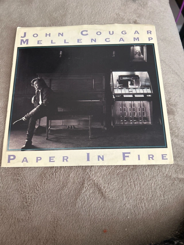 Selling a John Cougar Mellencamp album titled Paper in Fire on vinyl record. The vinyl is in great condition and plays great, with some minor signs of wear on the cover. A must-have for any classic rock enthusiast, this record delivers Mellencamp's signature heartland rock sound right to your turntable. If you're reading this, yes, the album is still available! Don't miss out on adding this gem to your collection. Cash accepted.