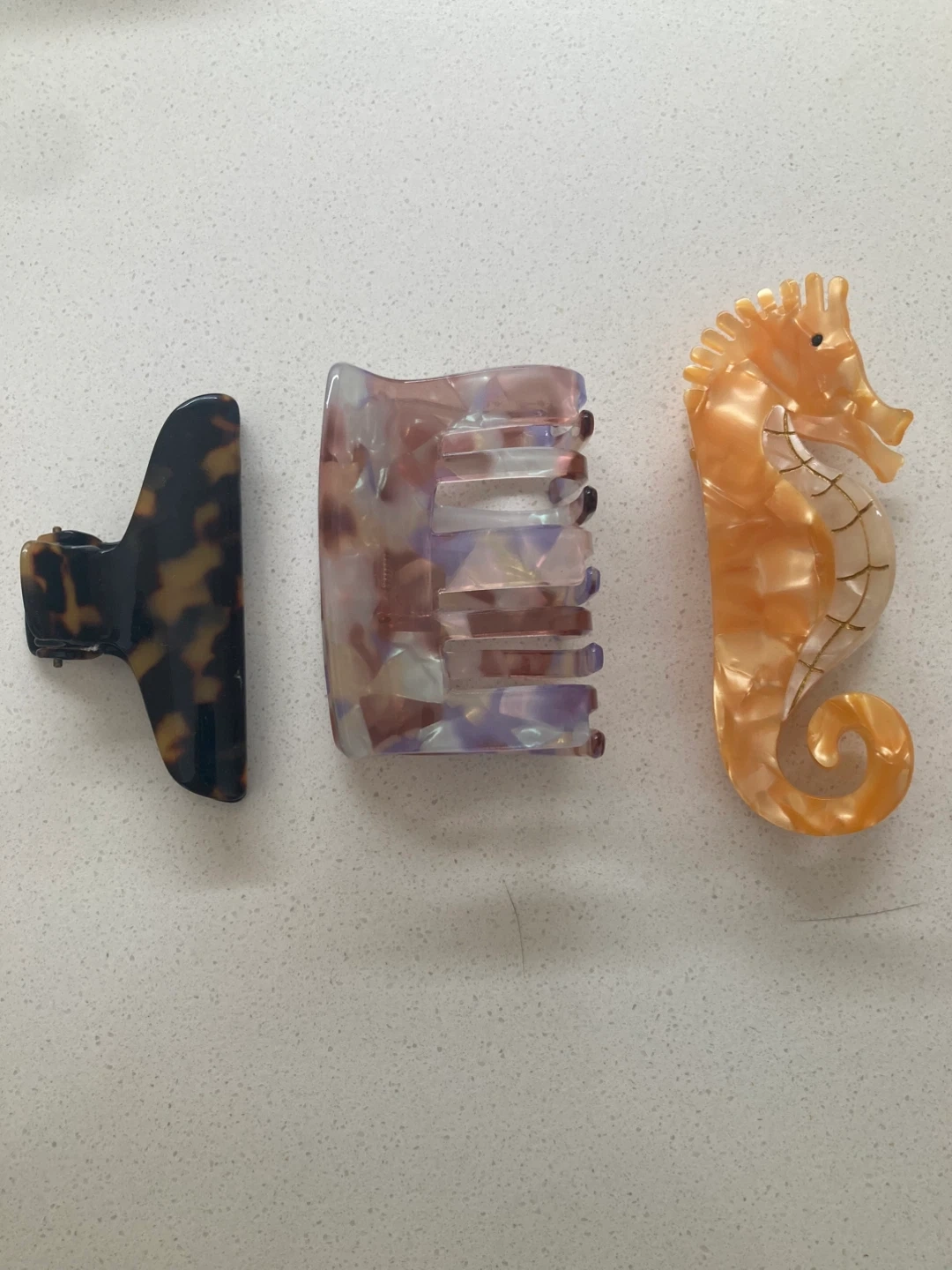 Set of 3 New Resin Hair Claw Clips - Seahorse, Tortoise, Marble