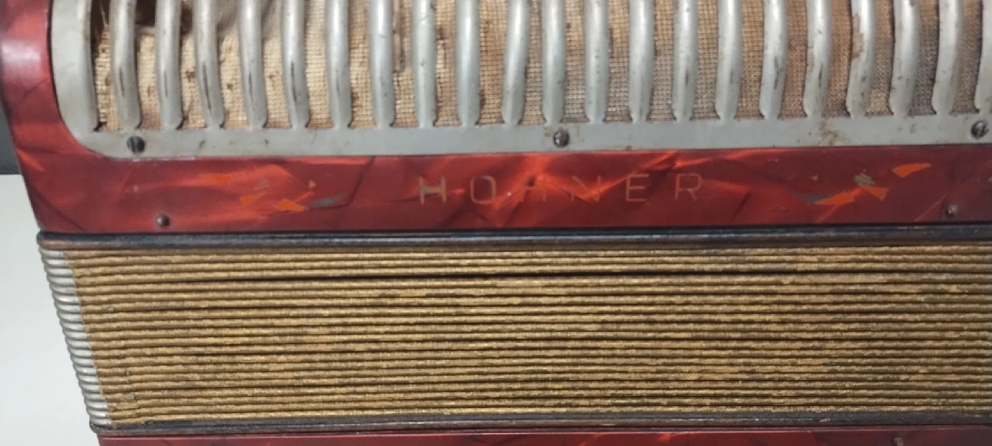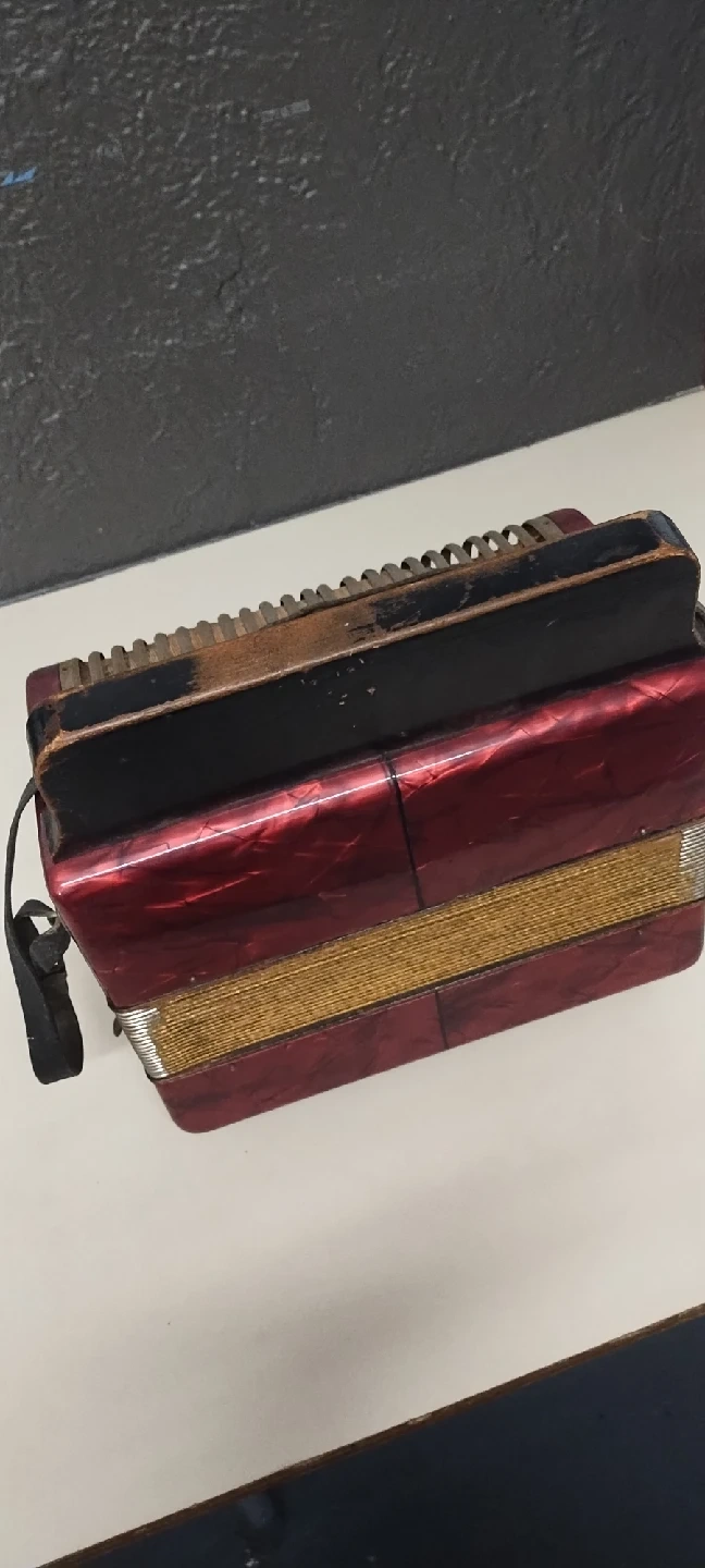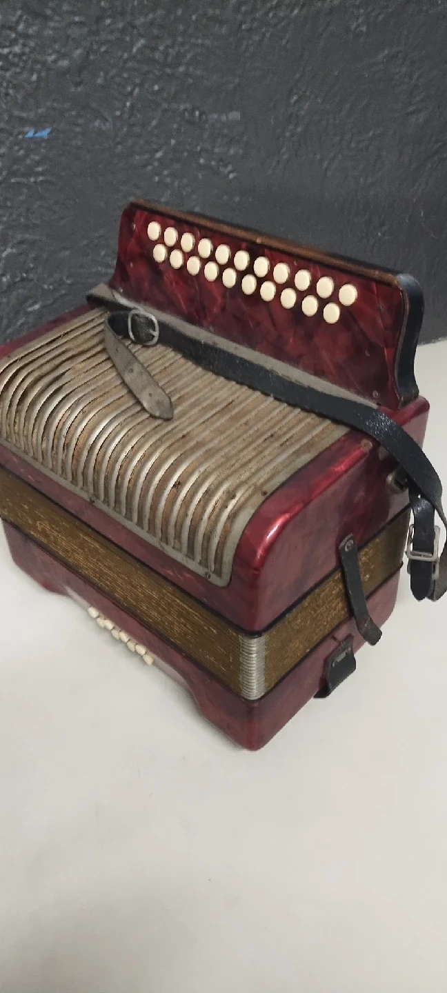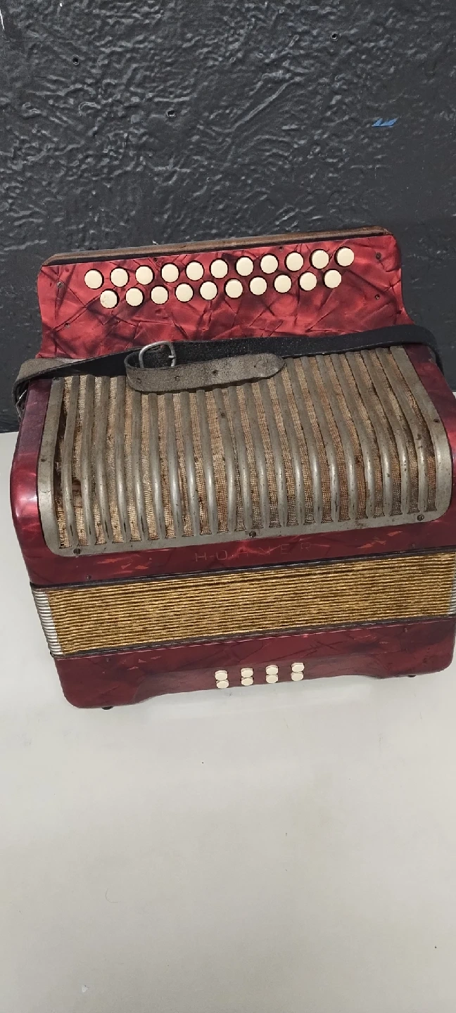 68Selling a used Hohner accordion. It shows signs of wear but is still in good condition. It has a red and gold color scheme with a black strap. Great for someone looking to start learning or add to their collection!