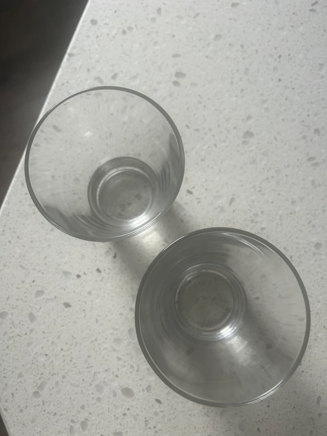 Selling a set of two clear drinking glasses. They're in great condition and ready for a new home! Perfect for everyday use or entertaining guests. Great for desserts!