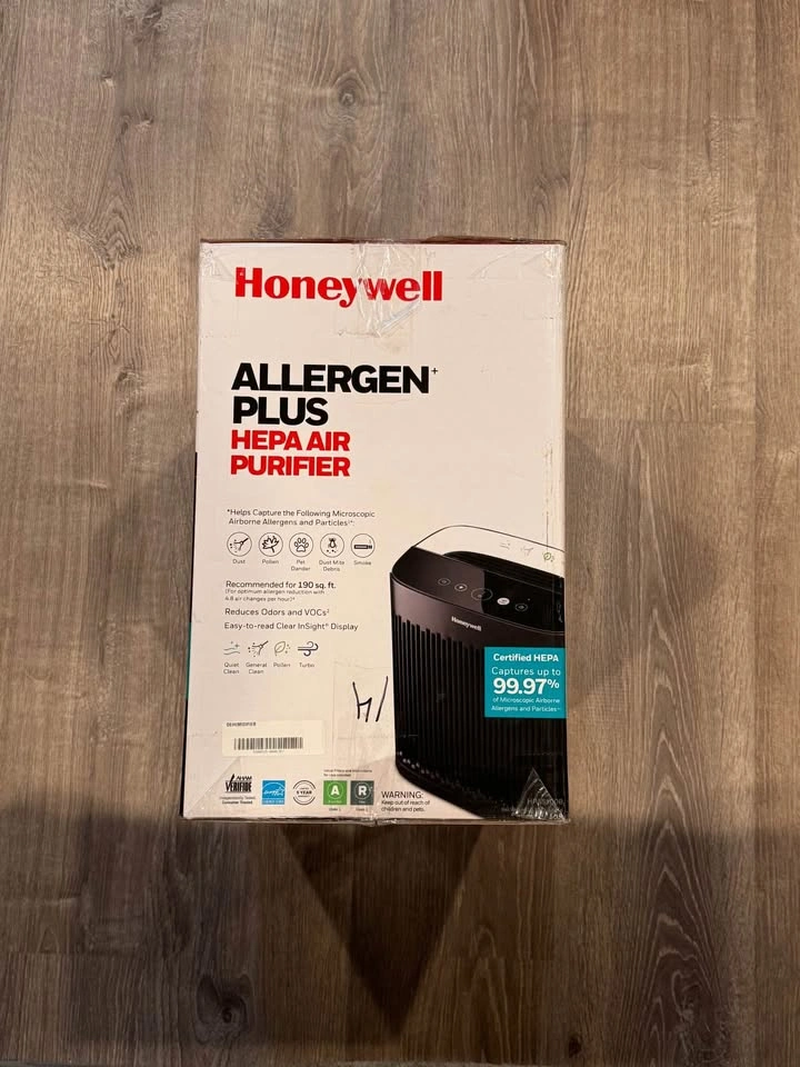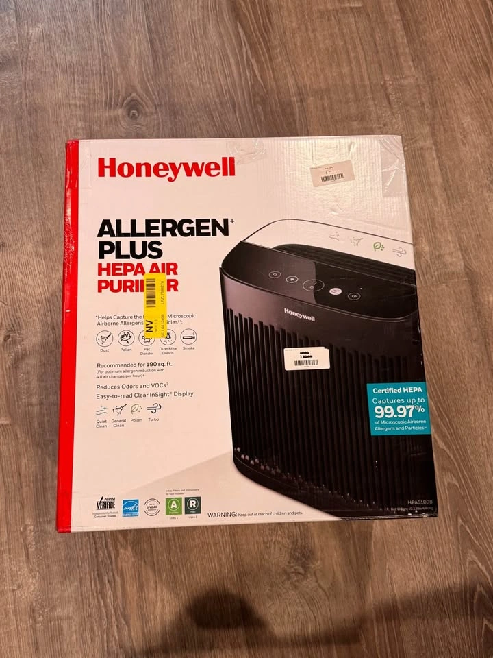 Honeywell HPA5100B Insight Series HEPA Air Purifier in sleek black finish – brand new, never used, but without original box. Designed for medium to large rooms up to 190 sq. ft., this air purifier features powerful HEPA filtration that captures up to 99.97% of microscopic airborne allergens and particles, including dust, smoke, pollen, and pet dander. Brand: Honeywell Model: HPA5100B Series: Insight HEPA Color: Black Condition: Brand New Room Size: Up to 190 sq. ft. Filter Type: True HEPA + Pre-filter Features: Insight™ Display shows air quality & filter status 4 air cleaning levels (Germ, General Clean, Allergen, Turbo) Quiet operation and Energy Star rated Filter change indicator Ideal for bedrooms, offices, and medium-sized spaces What’s Included: ✔️ Honeywell HPA5100B Unit ✔️ Original HEPA & Pre-Filter Installed ✔️ Power Cord