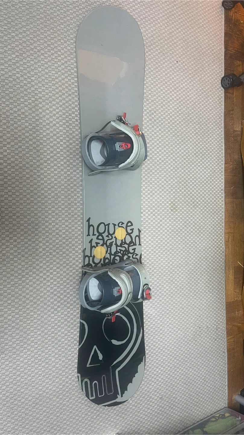 10Selling a used House snowboard that comes with bindings. It shows some signs of wear, but it's still in good condition for hitting the slopes. Perfect for someone looking for an affordable setup!