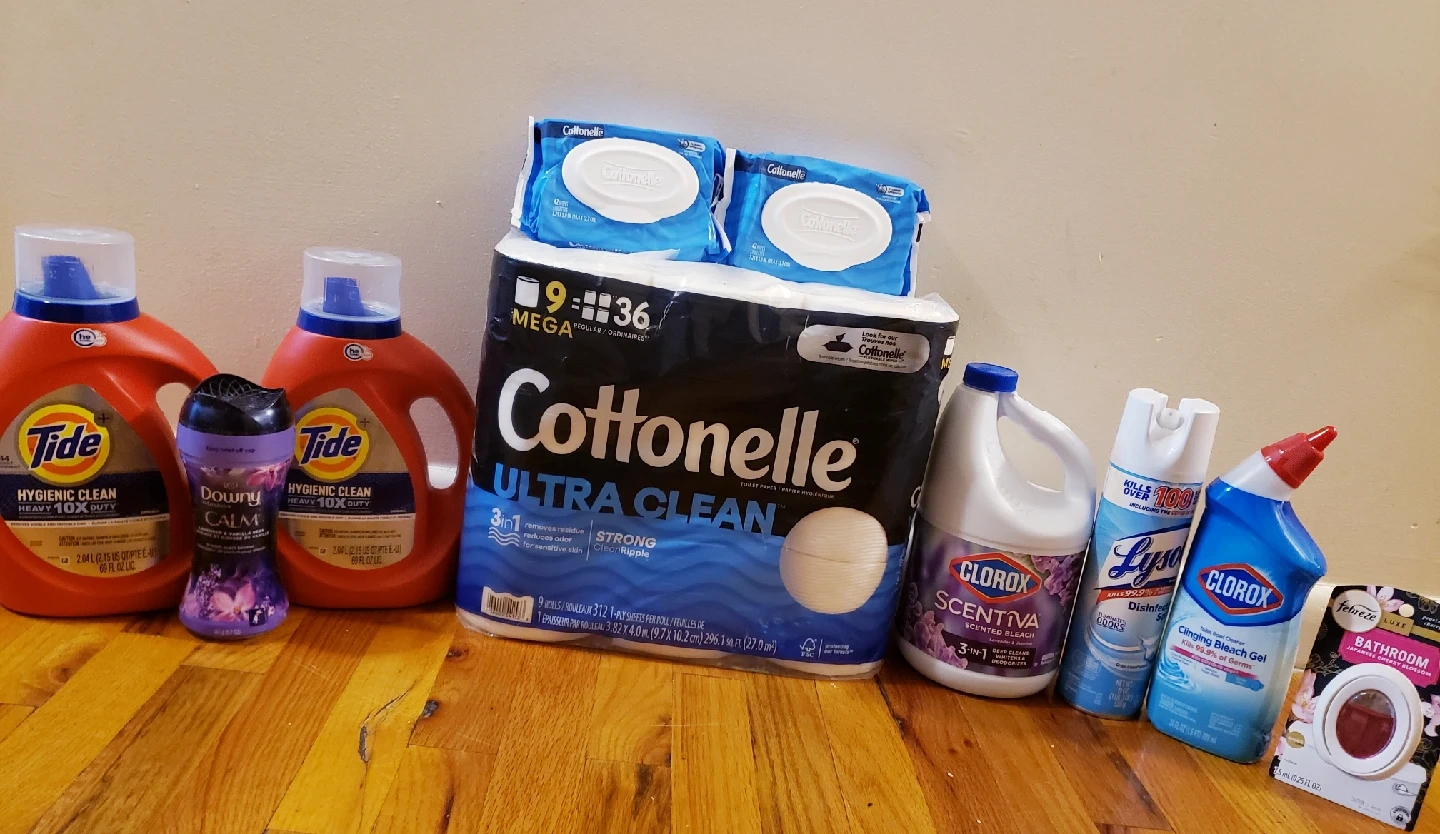 Bronx pickup. Morris ave area. Checkout other listings. $45 for all Clorox Scentiva scented bleach, Lysol disinfectant spray, Clorox toilet bowl cleaner, Febreze bathroom air freshener, Cottonelle Ultra Clean toilet paper, Tide hygienic clean laundry detergent, and Downy Calm in-wash scent booster and Cottenelle wipes