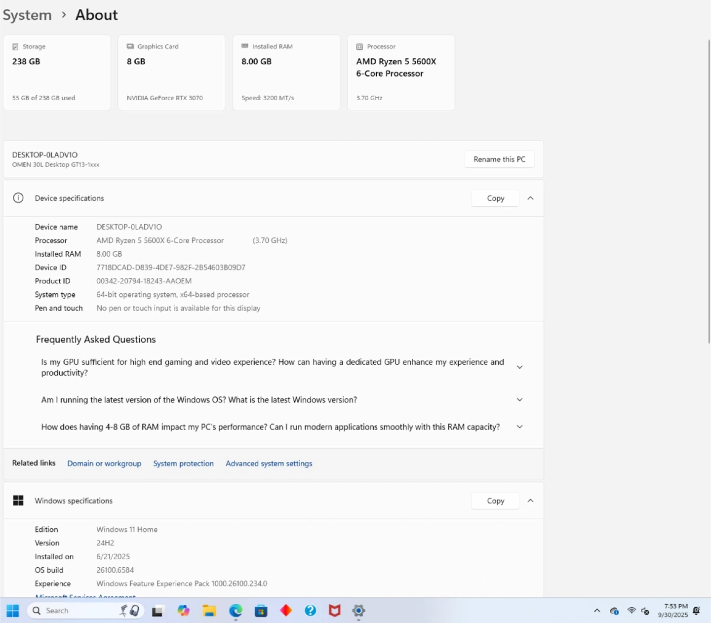 Selling an HP Omen 30L gaming PC. It features a GeForce RTX 3070 graphics card. Great for gaming!