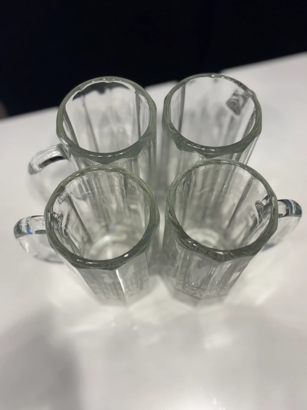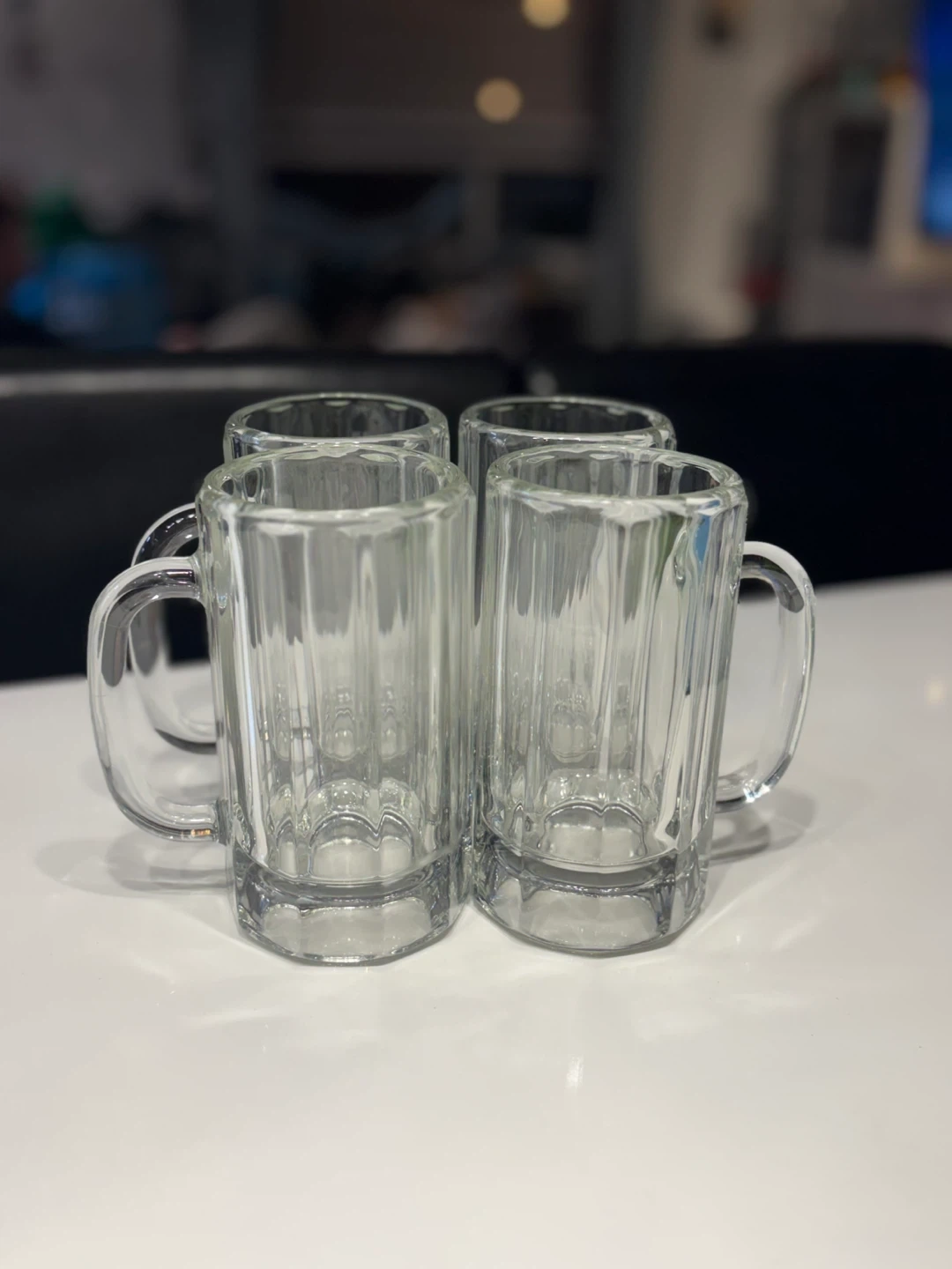 Here's a set of four clear glass beer mugs. They're made of clear glass and each has a handle. These would be great for beer or serving root beer floats. $5 each but deal if you buy all 4.