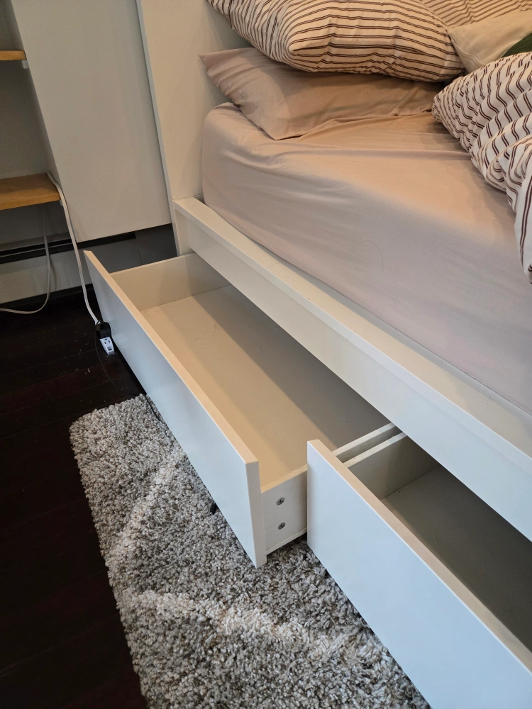 In great condition. Does not include mattress, bedding or any other items in the photos.