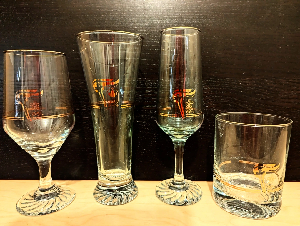 Selling the rear Collection of the vintage Olympic glasses with 22 Karat Gold inscriptions. The collection consists of 5 beer glasses, 5 Champagne glasses, 6 wine glasses, 1 whiskey glass, plus four Vancouver Olympics soft drink glasses as a free bonus.