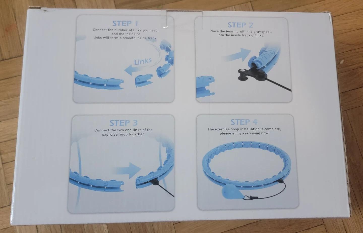 This smart hula hoop is designed to be adjustable for your needs. It features a gravity ball for a smooth exercise experience. The hoop can be assembled easily by connecting the links and securing the bearing with the ball. It's great for waist movement, toning hips, and leg shaping!