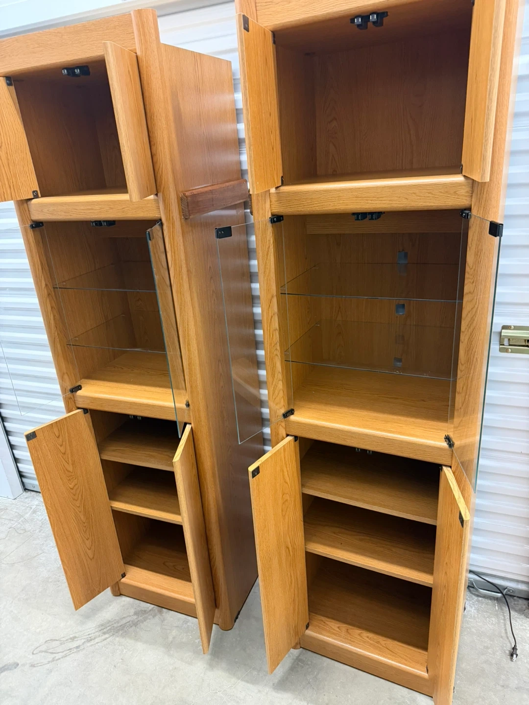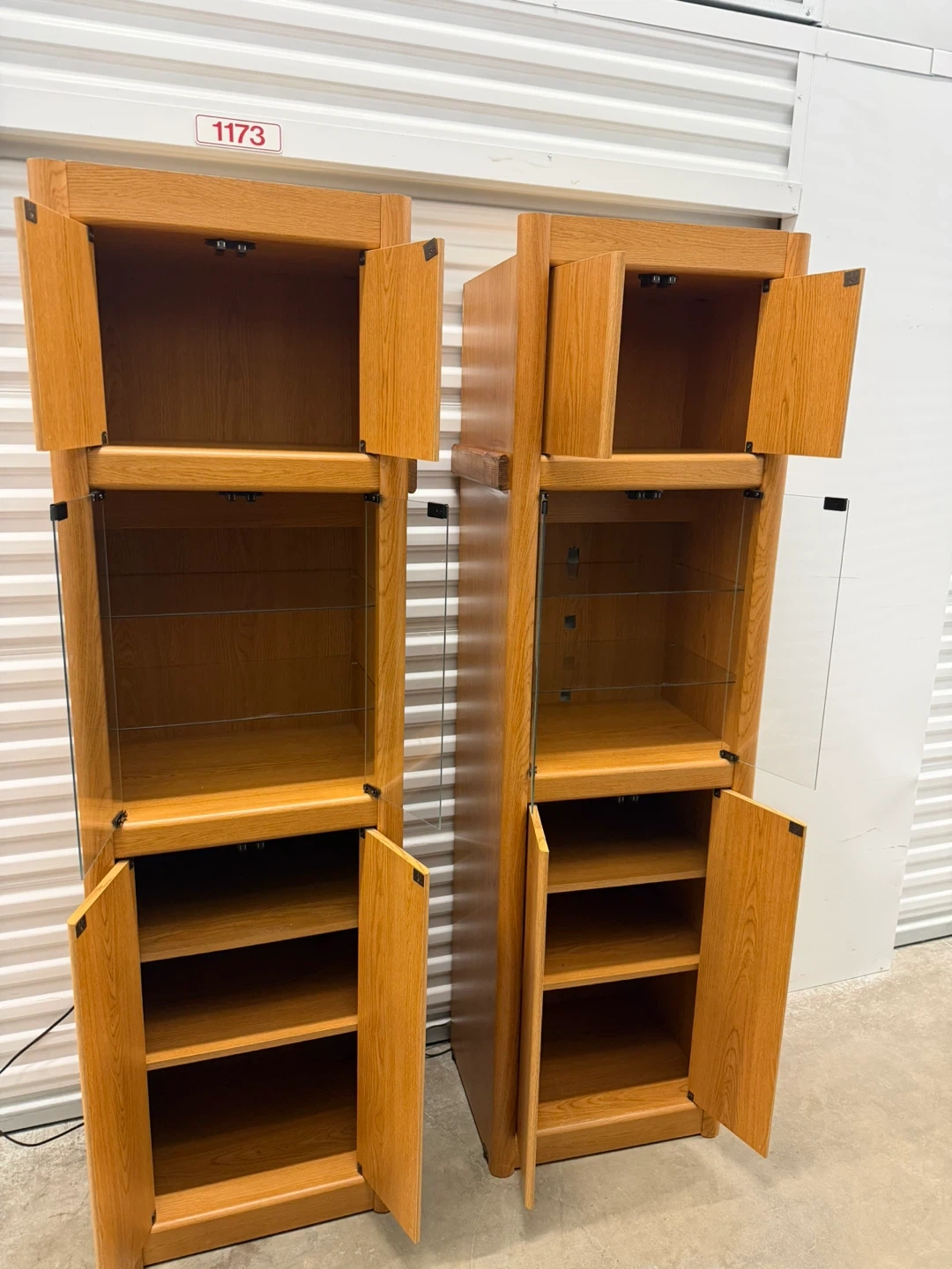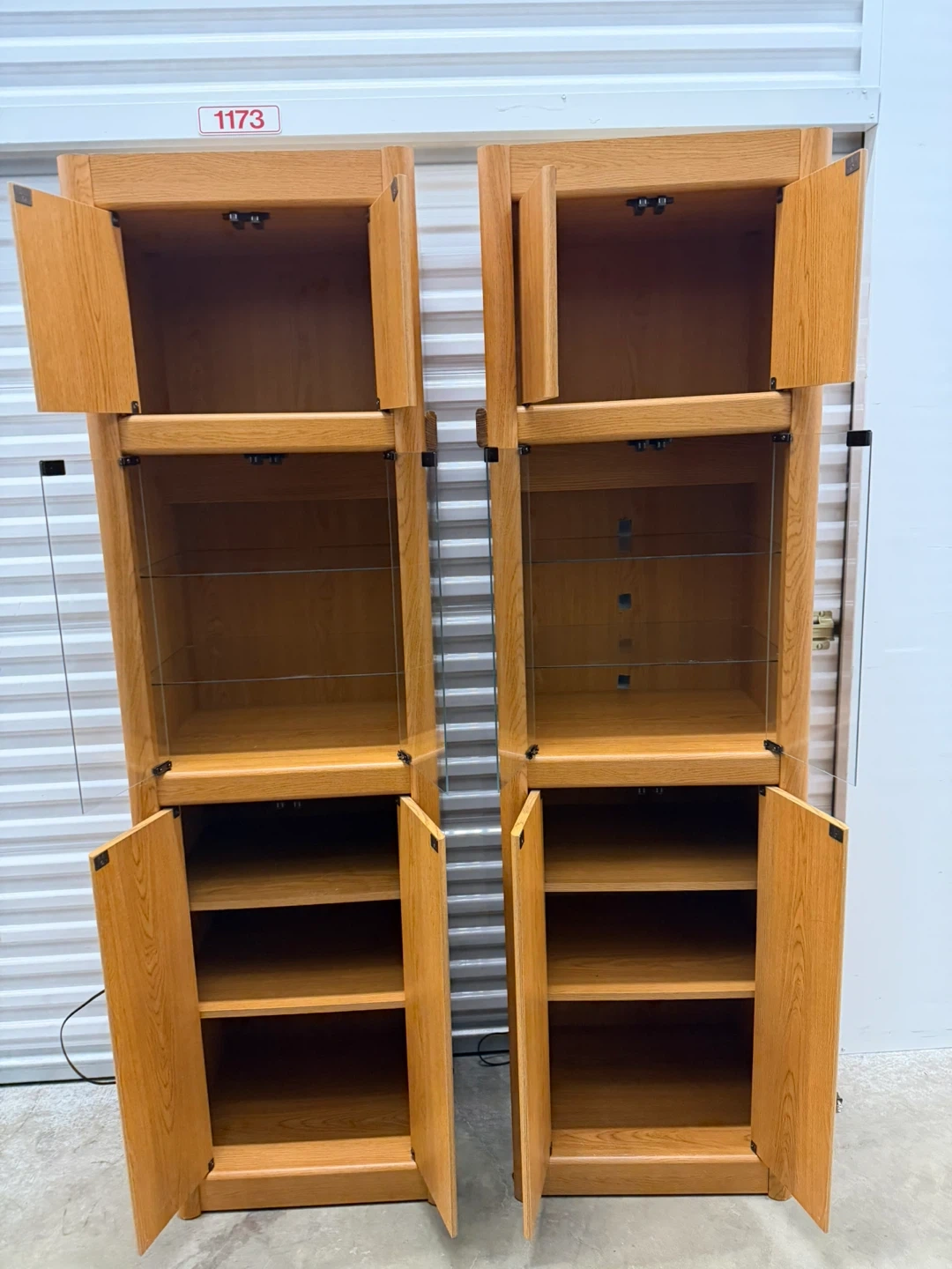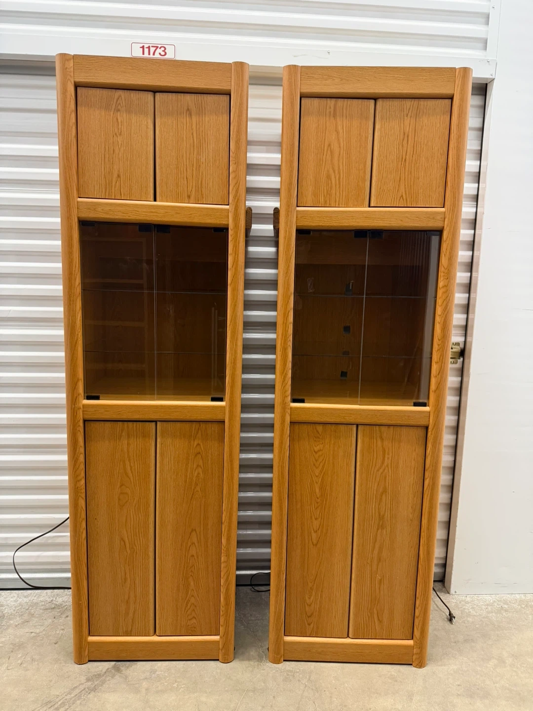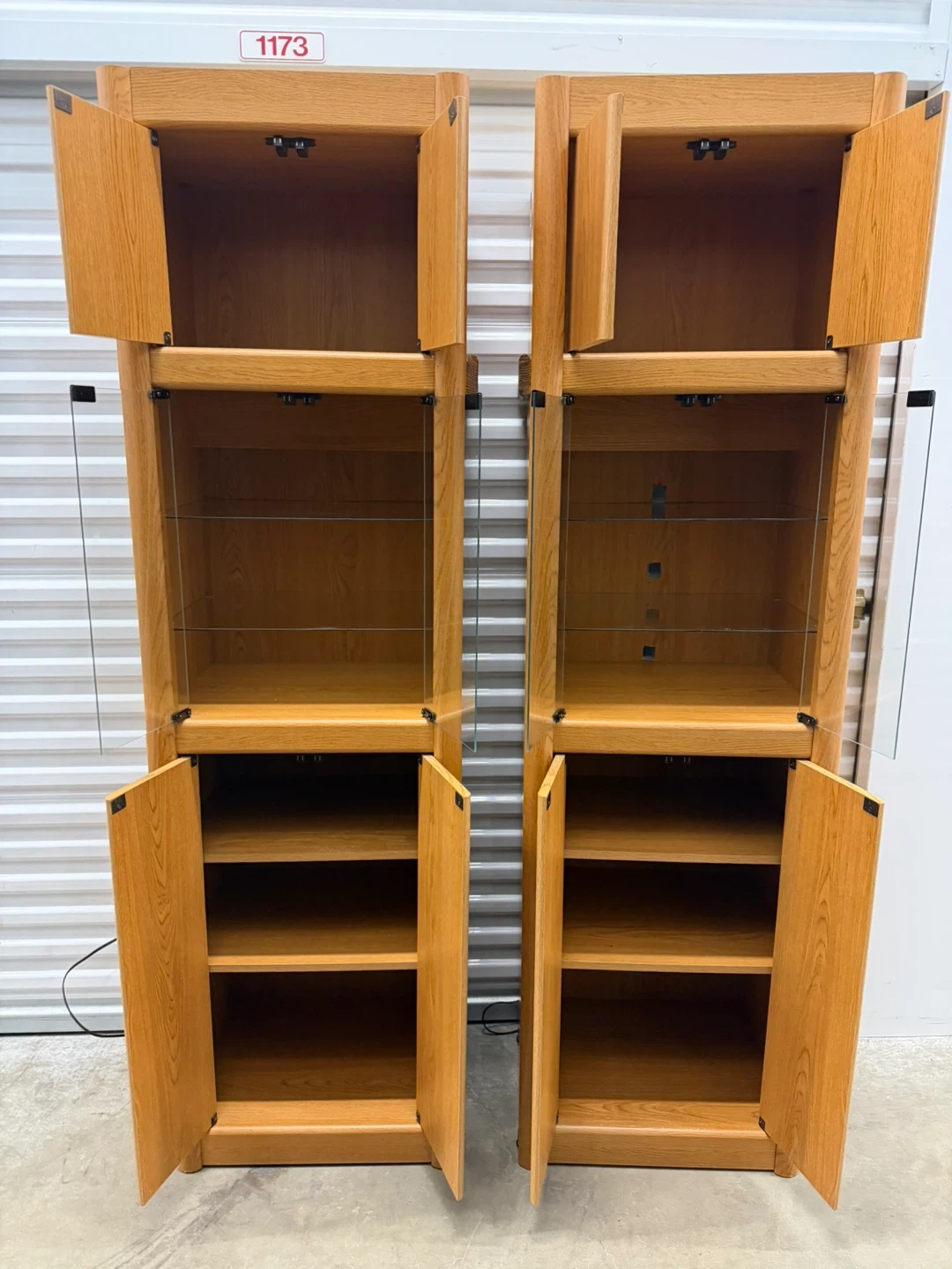 Oak Wood Display Cabinets with Glass Doors (Set of 2)