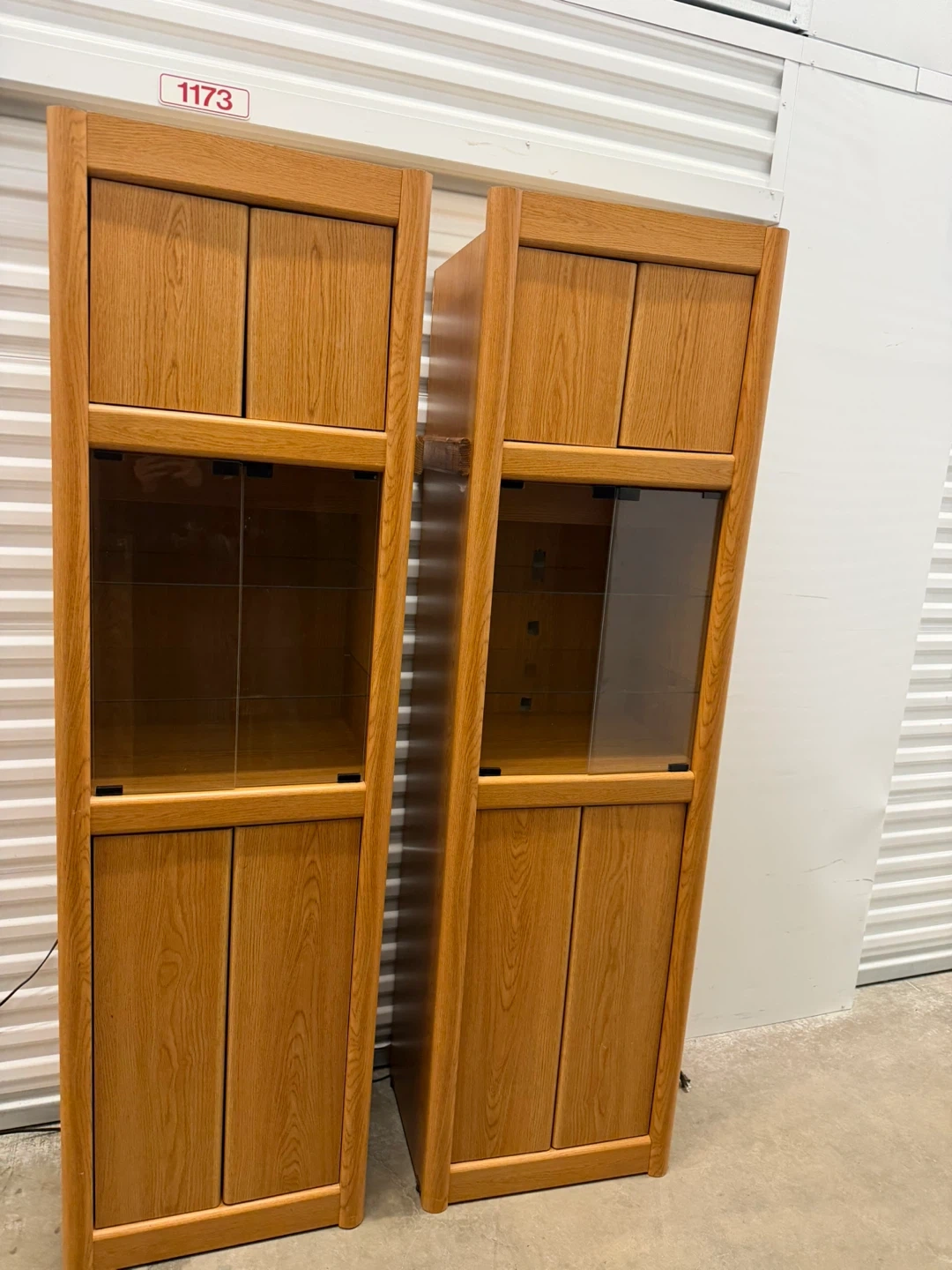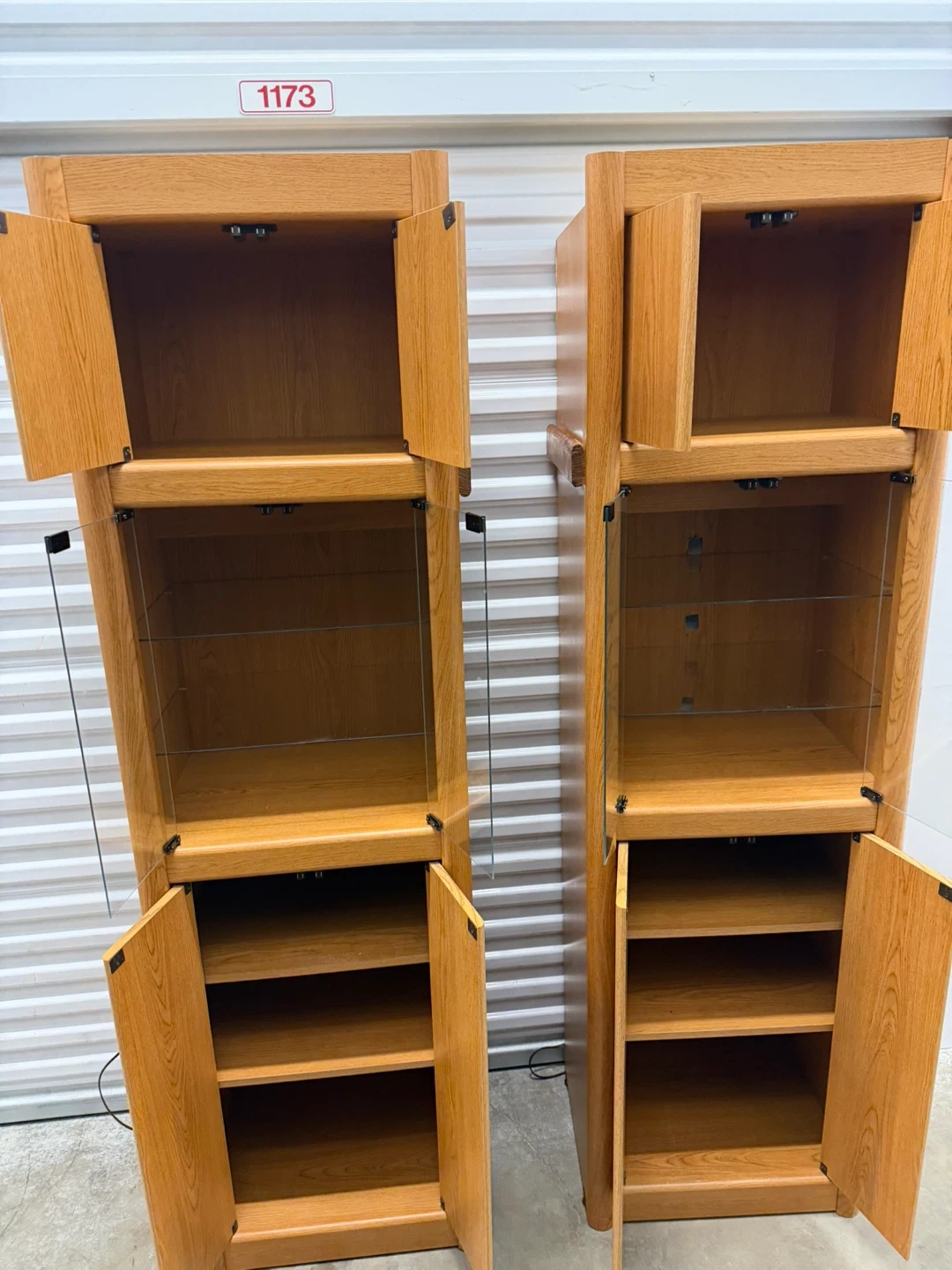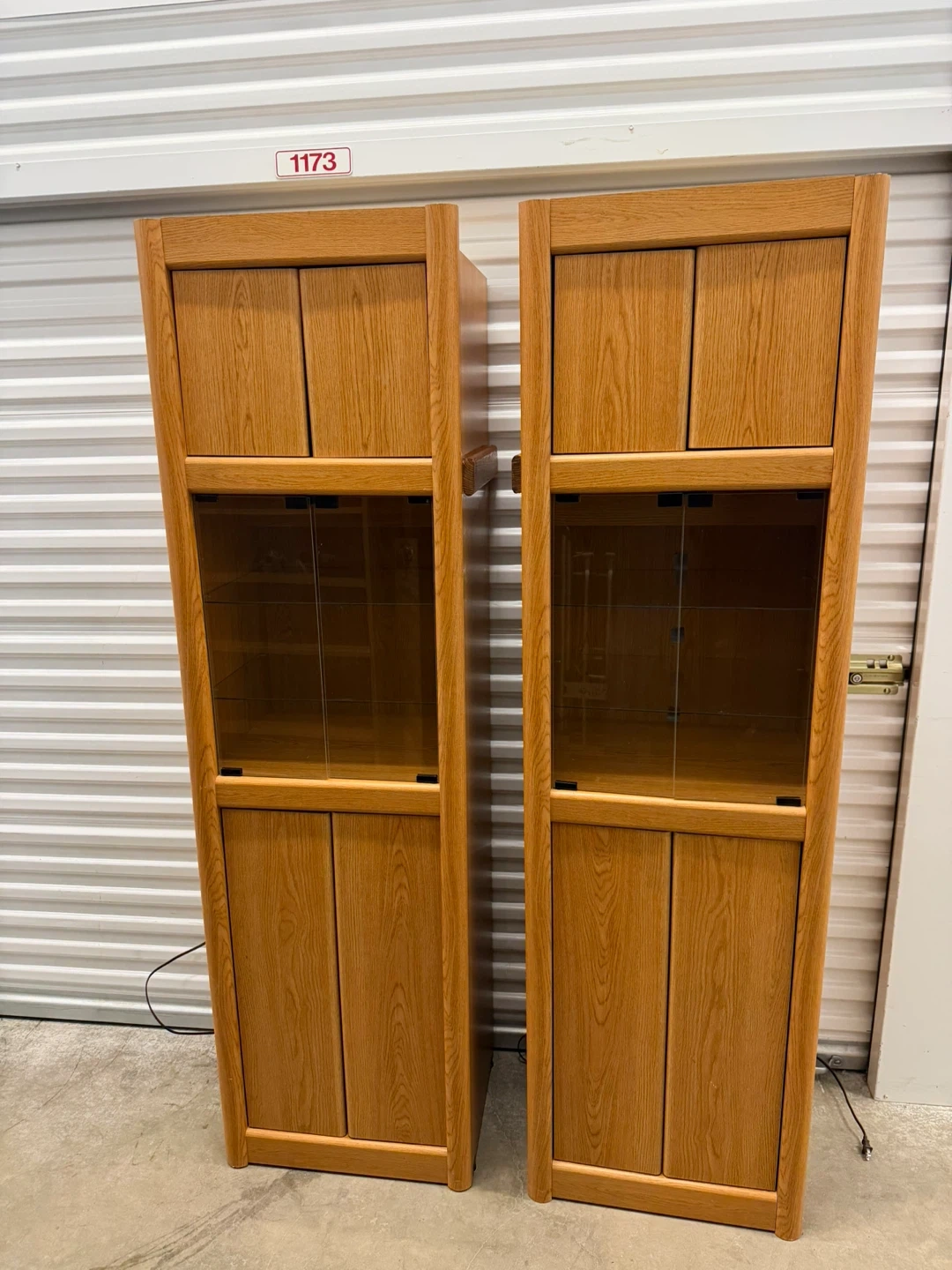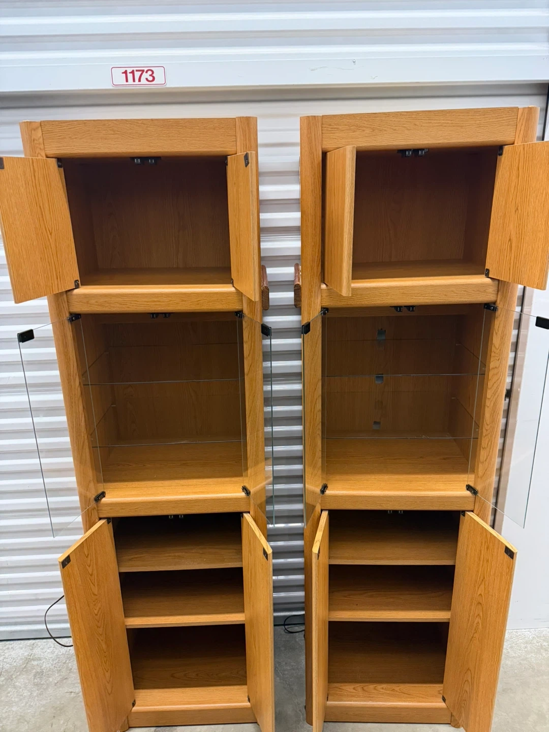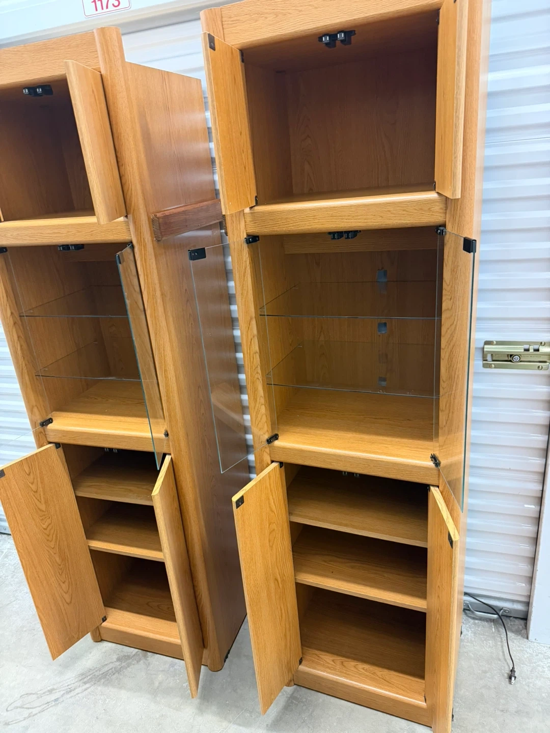 Oak Wood Display Cabinets with Glass Doors (Set of 2)