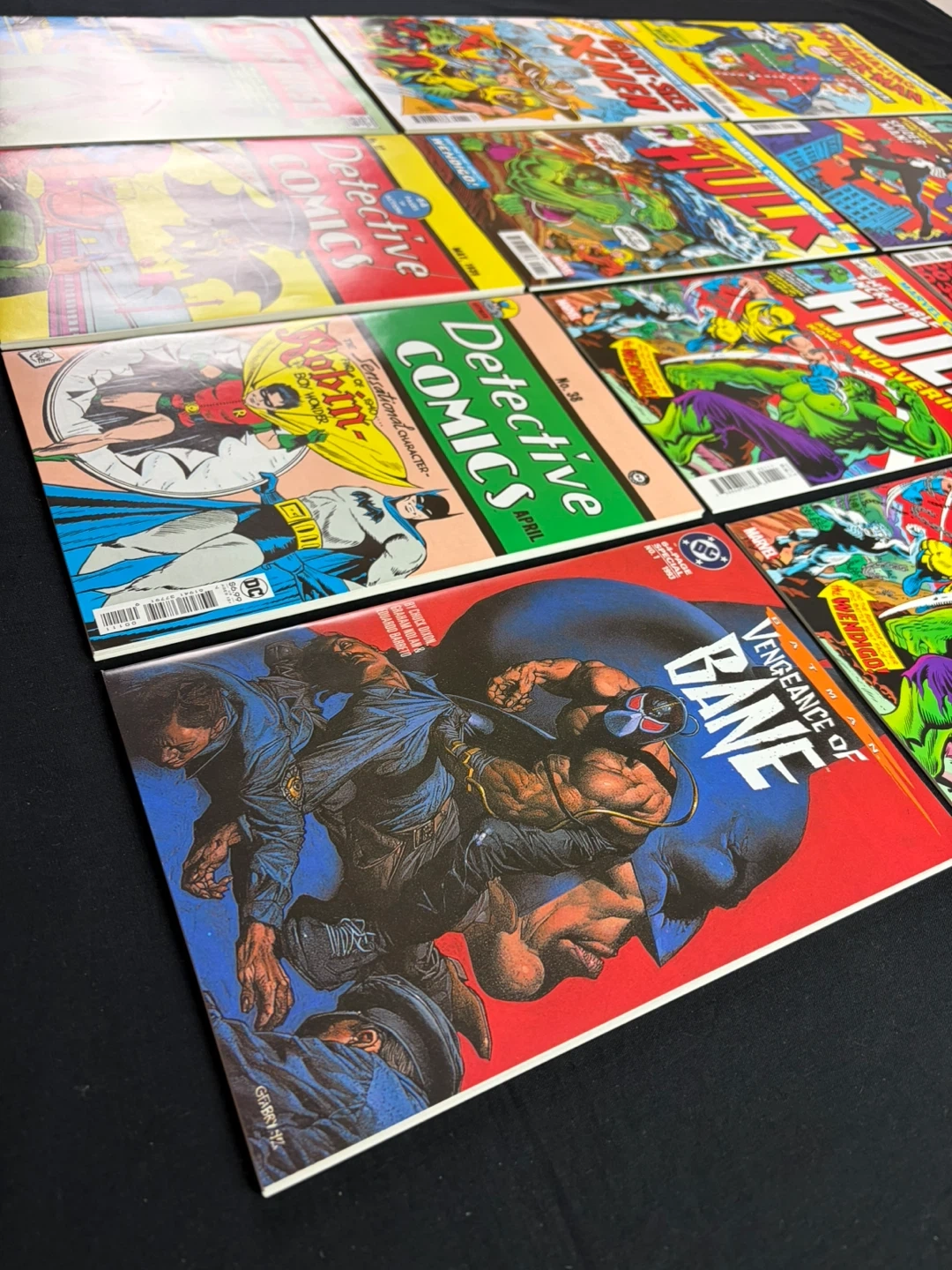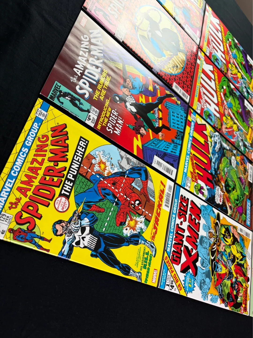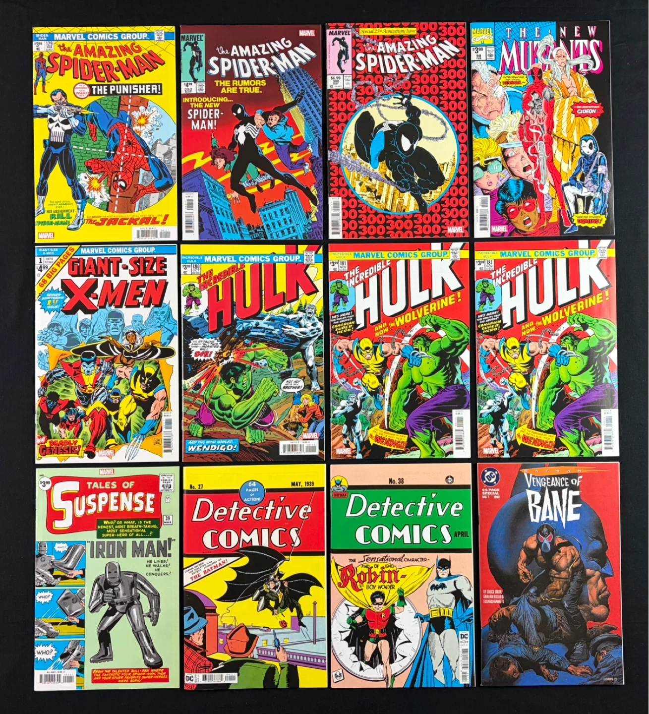 A collection of Marvel and DC Facsimile (reprint) comic books featuring iconic first appearances of characters like The Punisher, Wolverine, Iron Man, Bane, Deadpool, Venom, Black suit Spider-man, Robin, Batman, New X-Men etc etc etc.