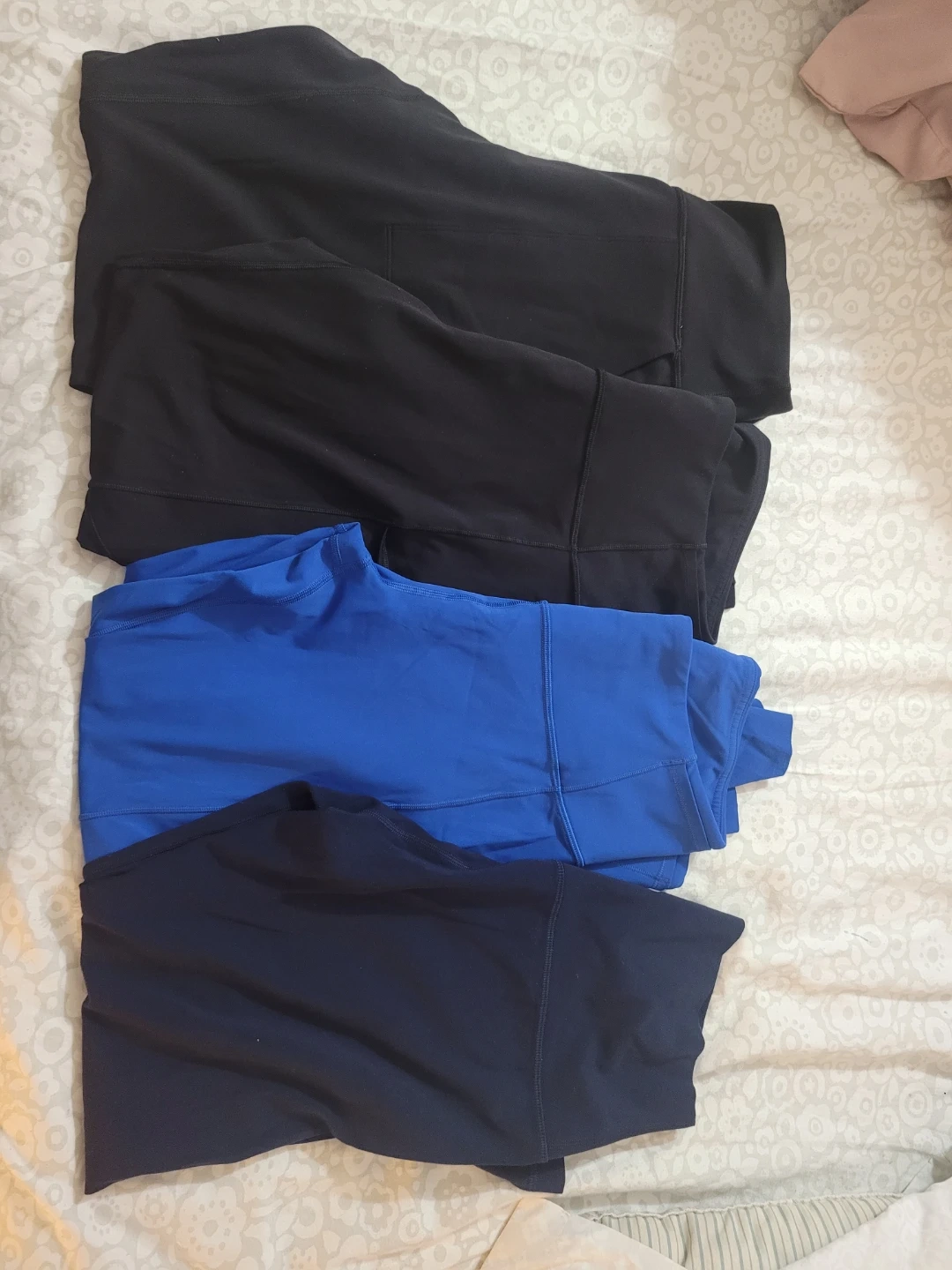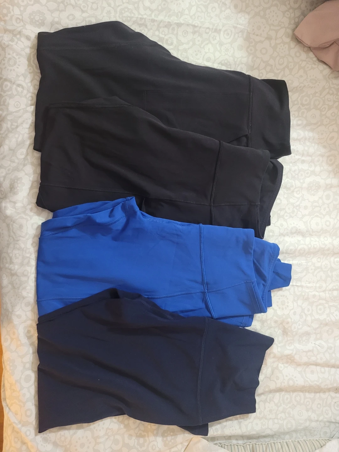 Selling a bundle of Lululemon leggings! There are 4 pairs in total. Three are black and one is blue. They're in great shape and ready for a new owner