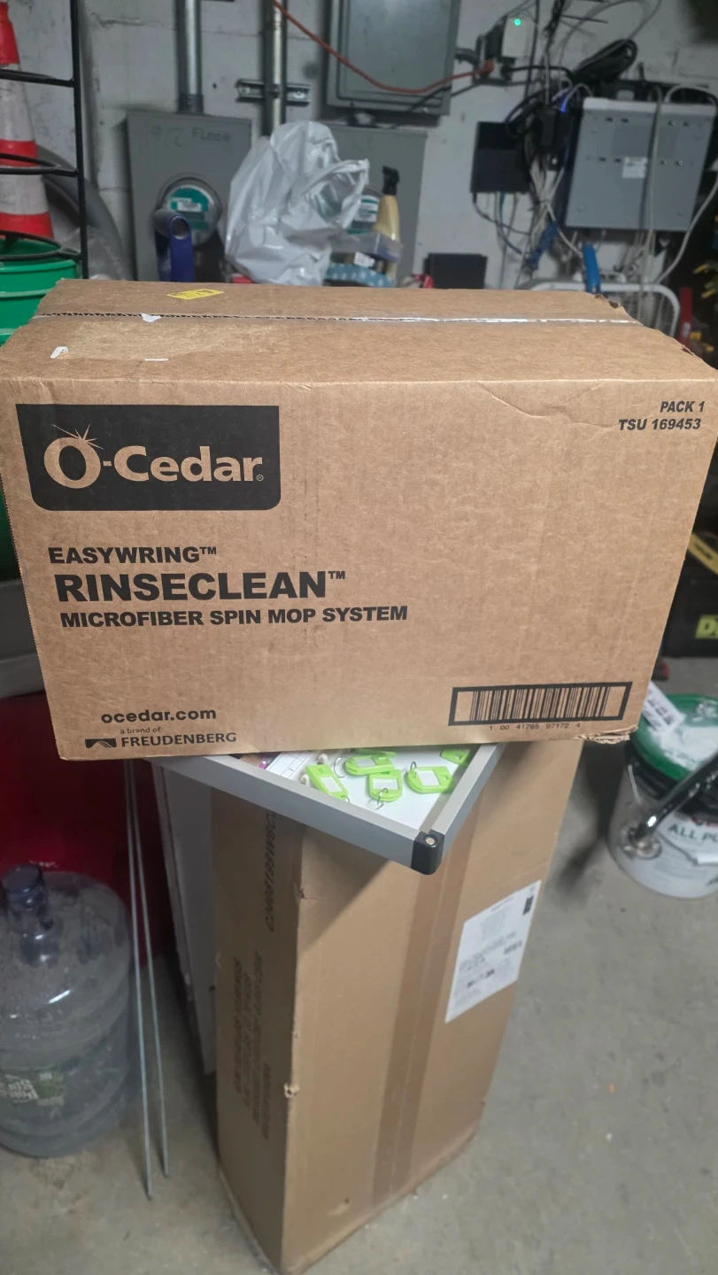 This O-Cedar Easywring RinseClean is a microfiber spin mop system. It's designed for efficient cleaning. The system includes a mop and bucket.