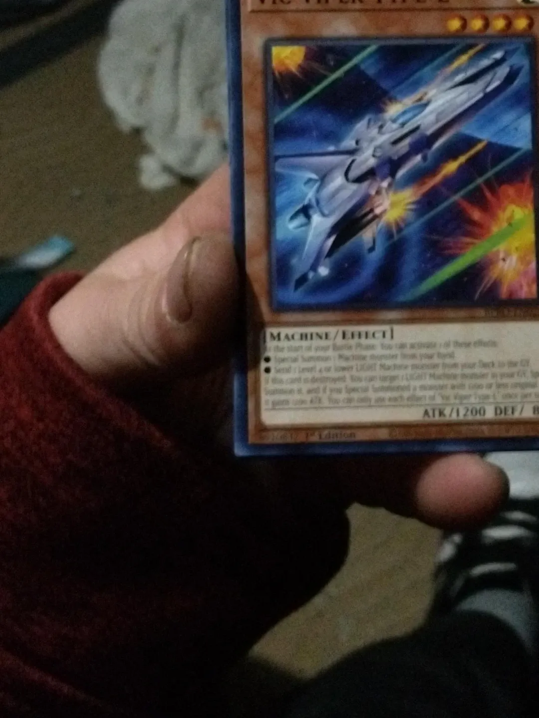 This is a Yu-Gi-Oh! trading card for Vic Viper Type-4. It's a MACHINE/EFFECT monster with 1200 ATK and 8 DEF. This card can special summon LIGHT Machine monsters from your hand or deck.