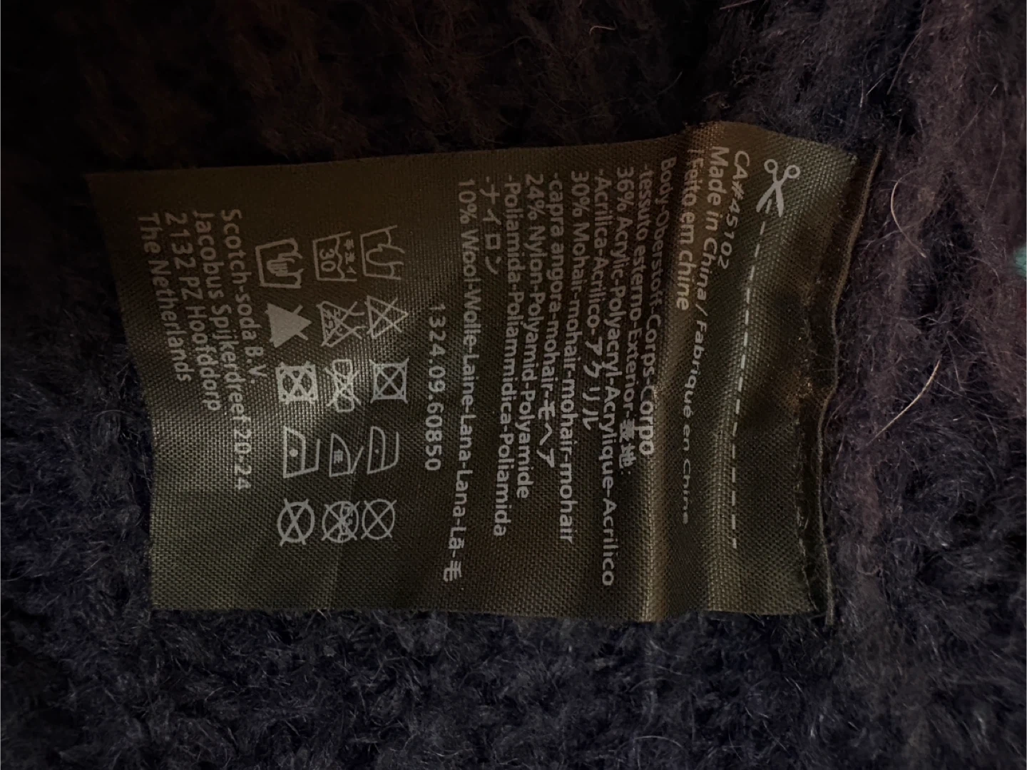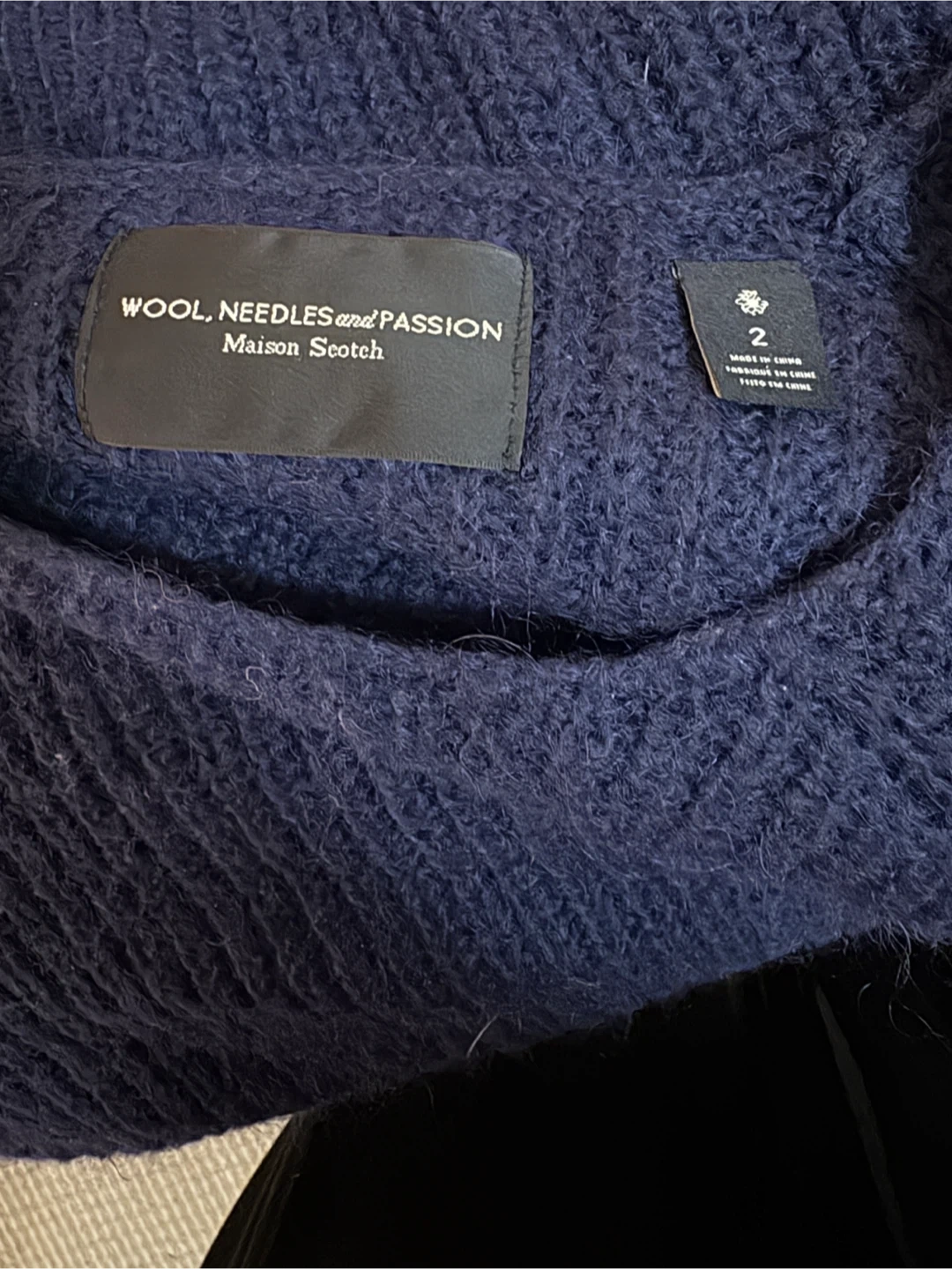 Cozy Maison Scotch sweater in a lovely navy colour! It's a size 2 and made with a blend of wool, acrylic, nylon, and polyamide for a warm and comfortable feel. Perfect for those chilly Canadian evenings!