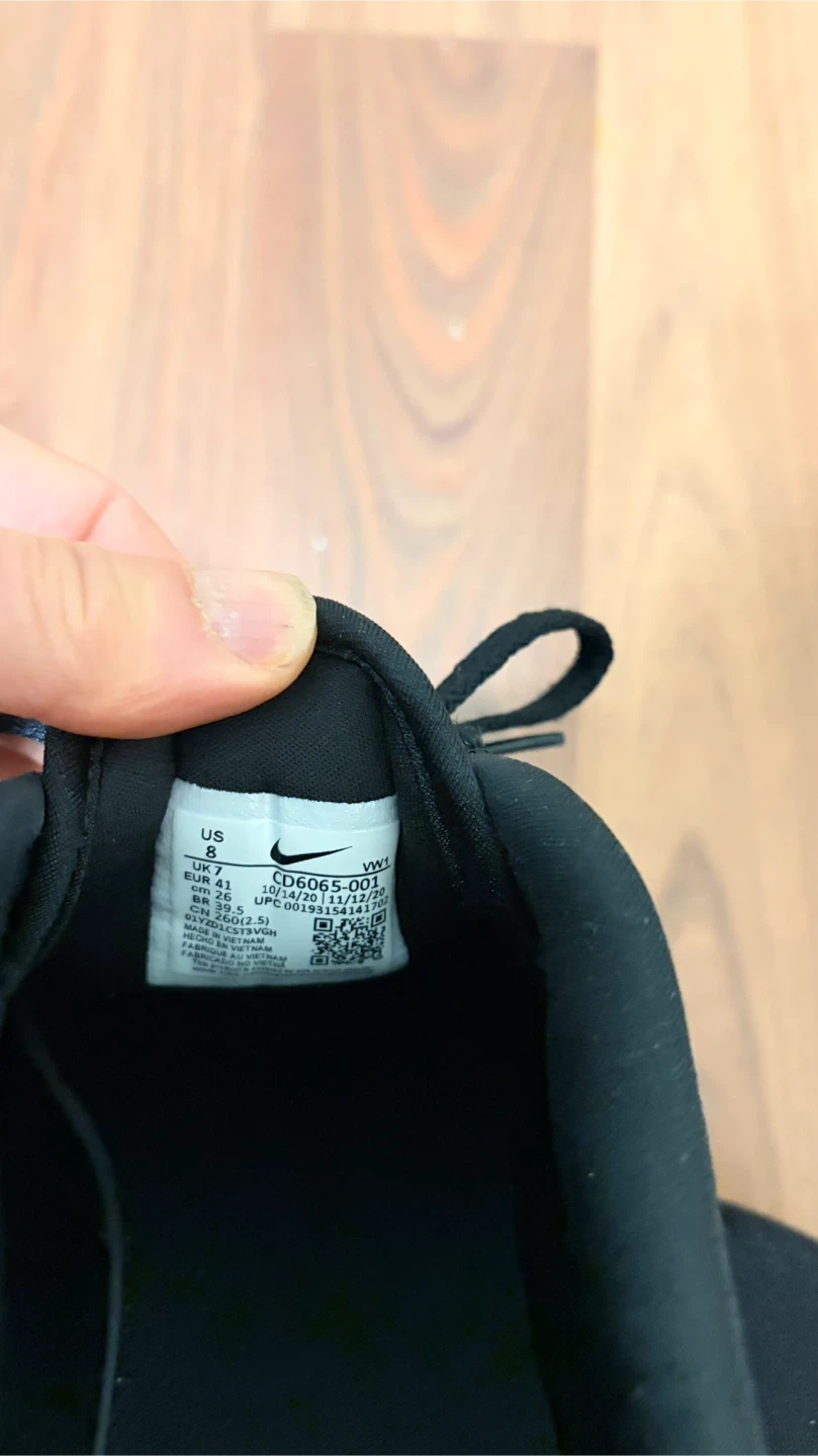 Black Nike golf shoes with white accents. Men's US size 8, UK size 7, EUR size 41. These shoes are designed for the golf course.