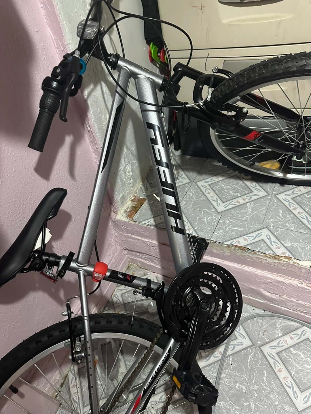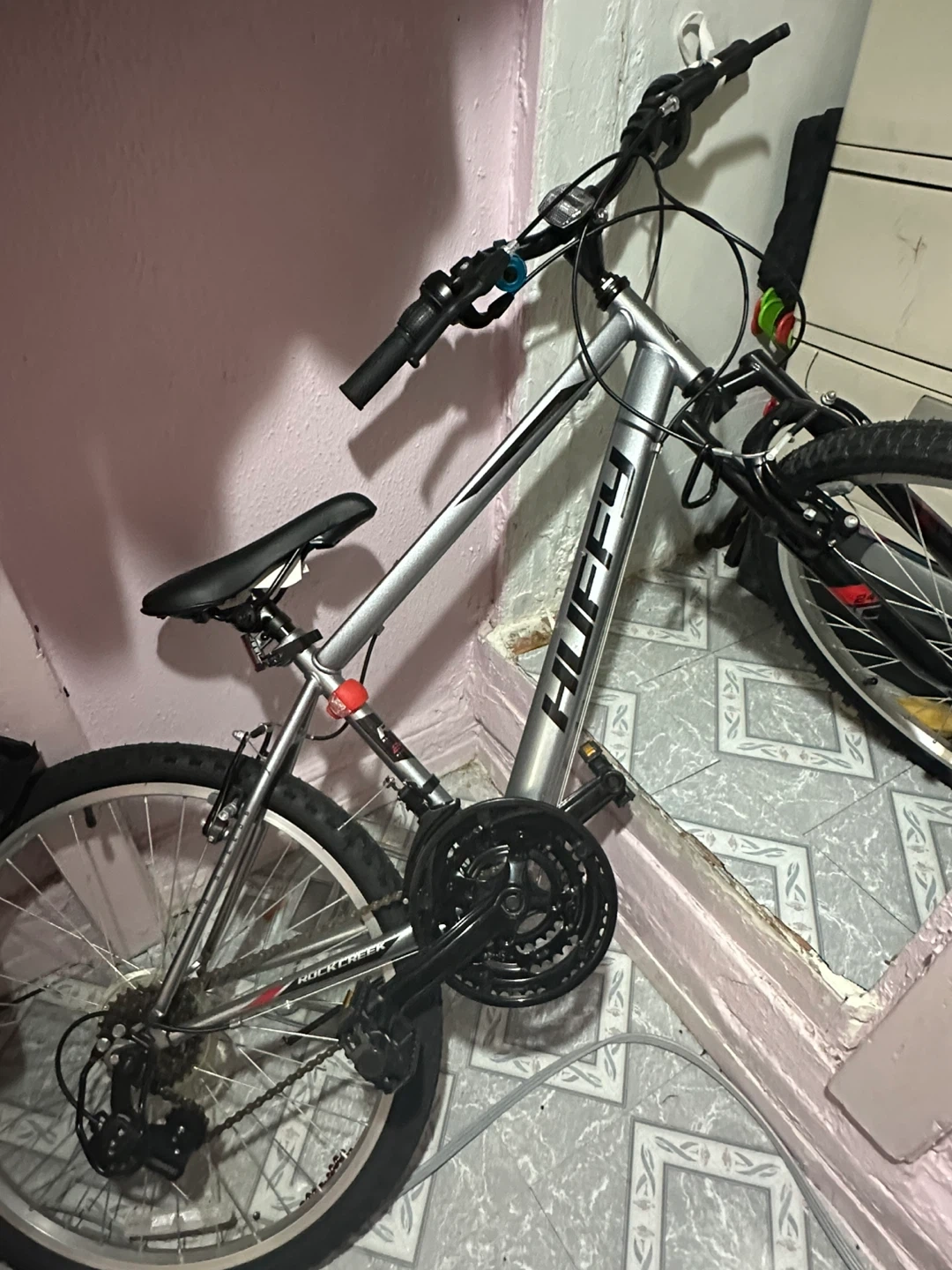 Selling a Huffy Rock Creek 24-inch mountain bike in silver. It looks like it's in good condition and ready for some adventures!