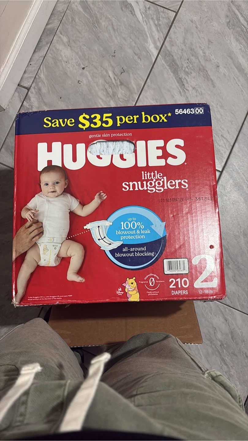 34Selling a box of Huggies Little Snugglers diapers. The box contains 210 diapers, size 2, for babies 12-18 lbs. These diapers provide up to 100% blowout and leak protection with all-around blowout blocking. They are also made without fragrance and parabens.