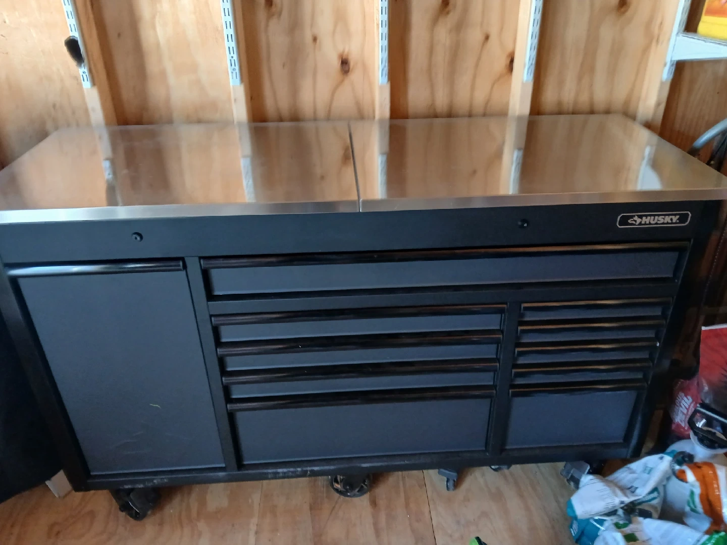 5Selling a Husky rolling tool cabinet in black. It's got a bunch of drawers for organizing all your tools and a cabinet on the side. Great for a garage or workshop. Slightly used, like new.