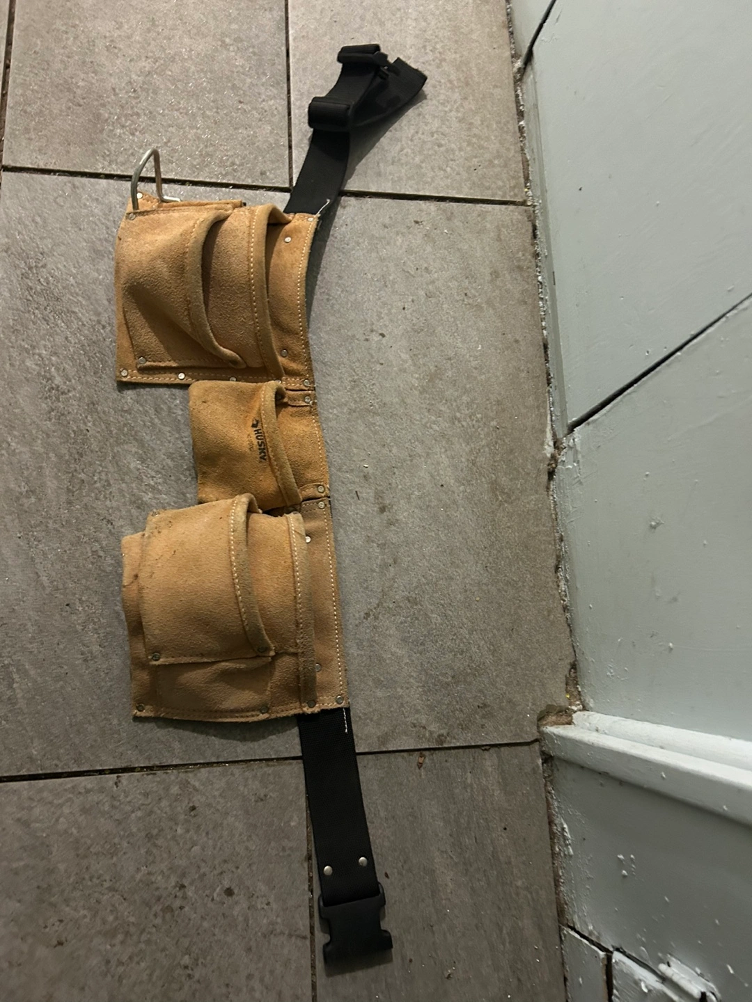 139I'm selling a used Husky leather tool belt. It has a few pockets and a black nylon belt.
