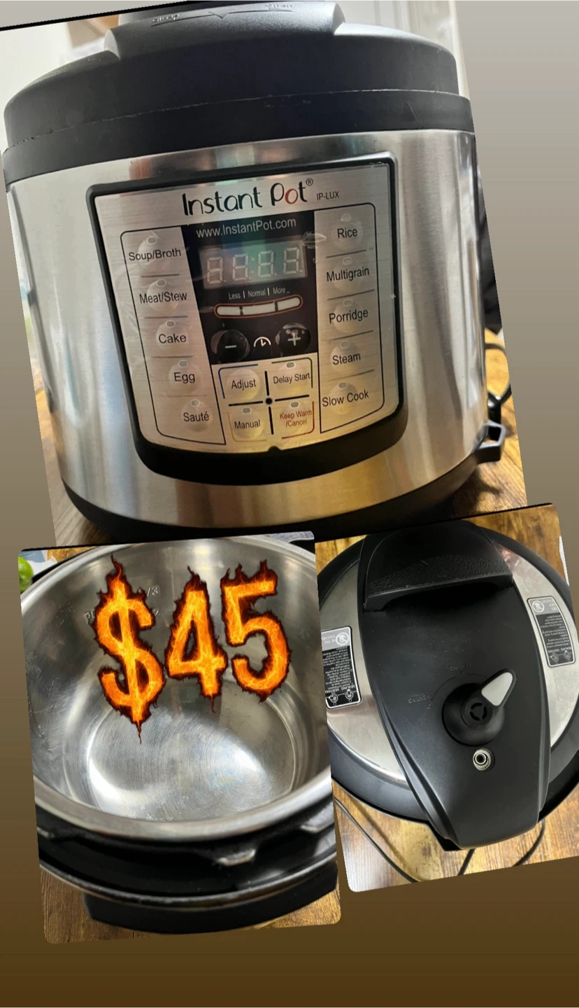 Instant Pot IP-LUX model with multiple cooking functions. Stainless steel inner pot. Includes accessories.