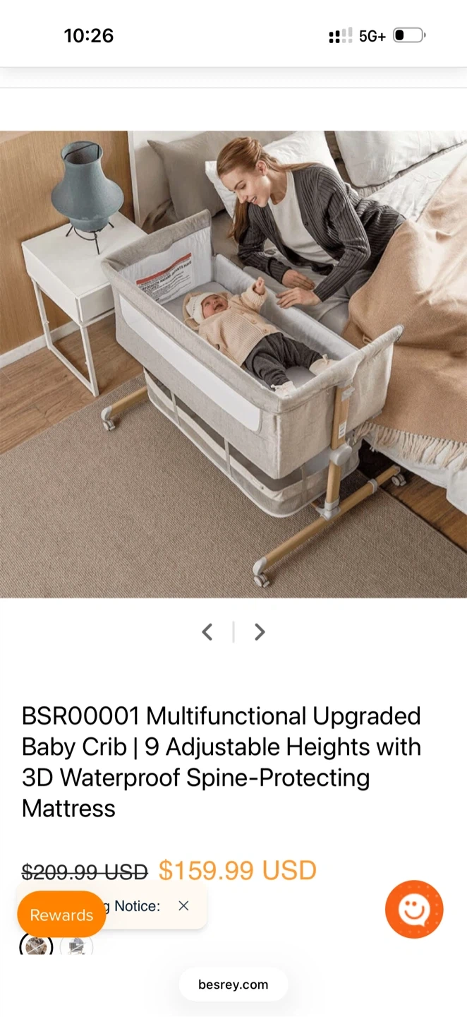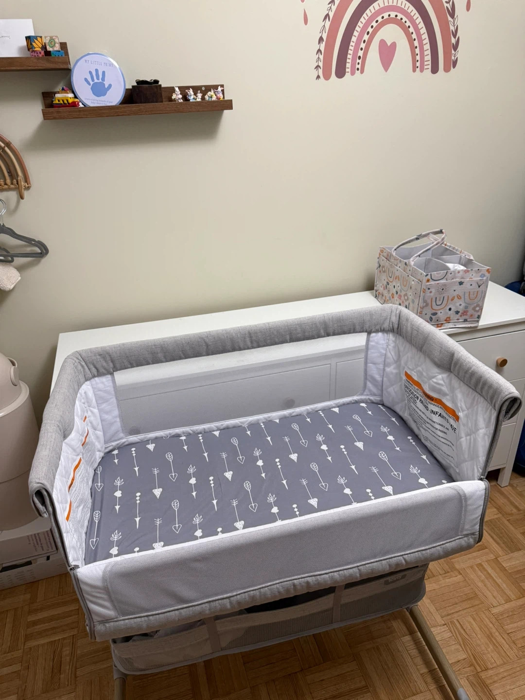 This Besrey baby crib is multifunctional and features 9 adjustable heights. It includes a 3D waterproof spine-protecting mattress. Suitable for newborns and infants. It has wheels which can be locked and make it super easy to move around the house. It’s clean, washed and stain free.