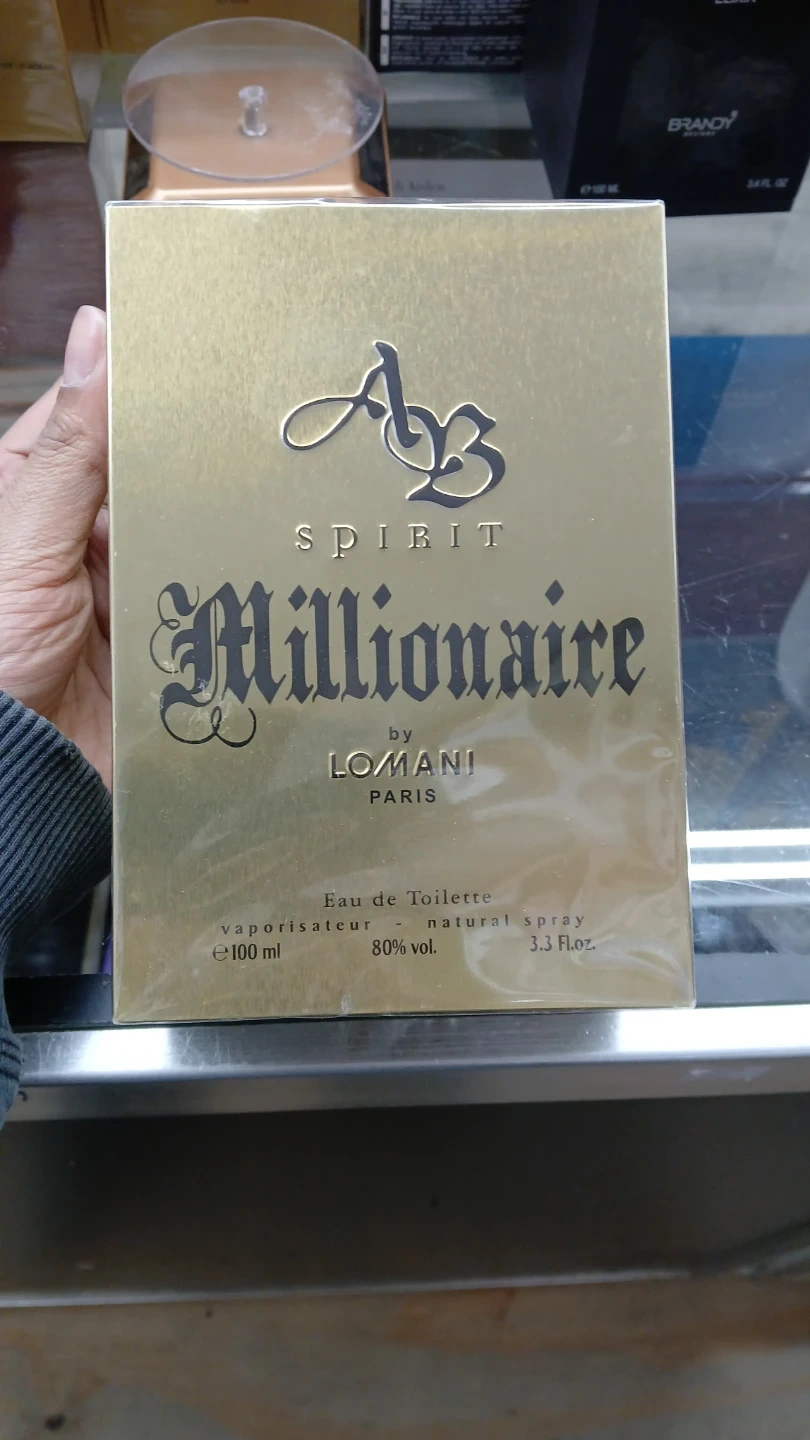 This is Lomani Millionaire Spirit Eau de Toilette. It's a natural spray with 80% vol. The bottle contains 100 ml. It's packaged for sale.