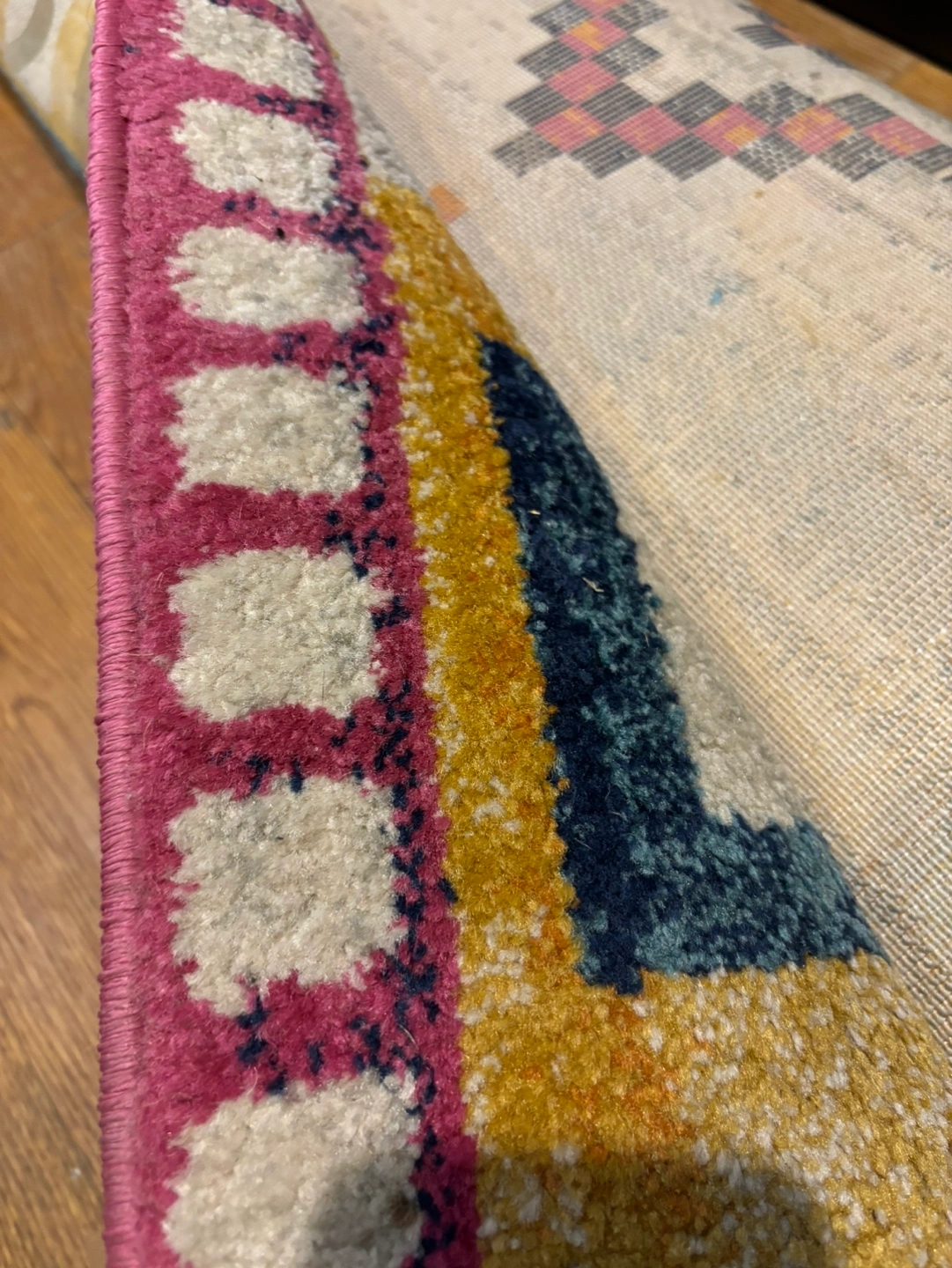 Multicolored area rug with geometric patterns. Great for living room or dining room. Great condition!
