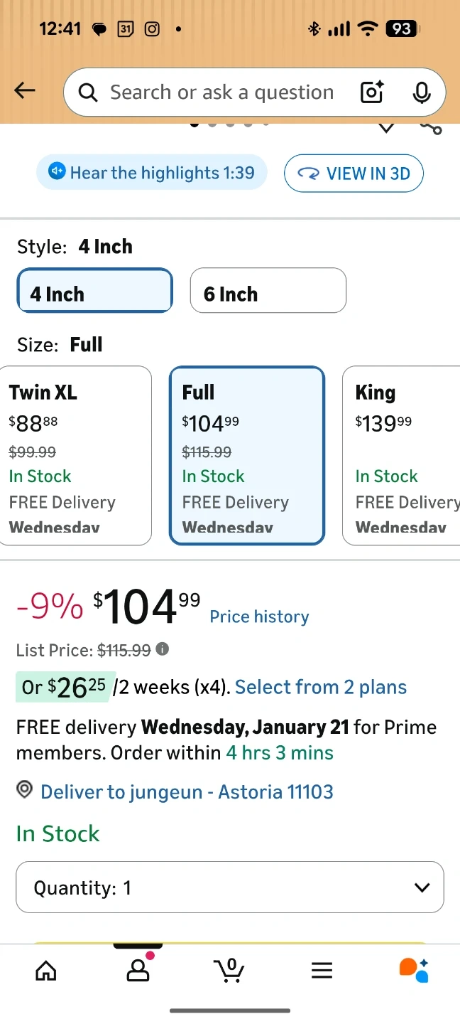 Selling a 4 inch Full Folding Mattress !