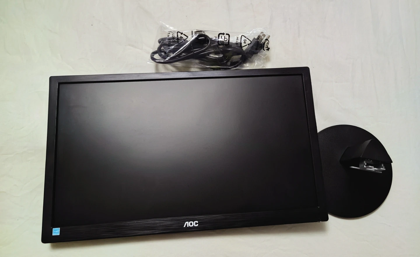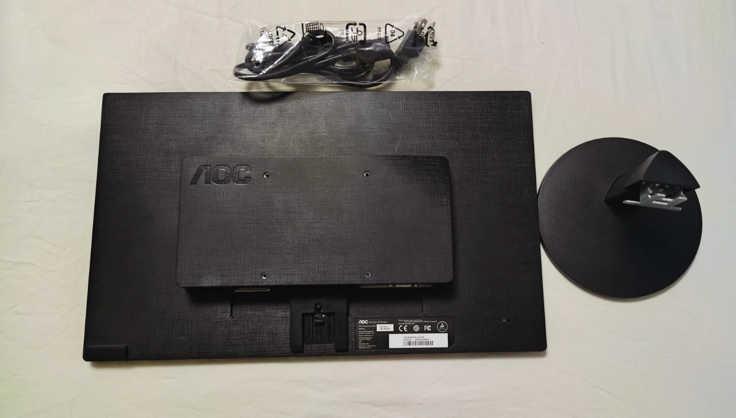 This is an AOC computer monitor. It includes the stand and power/VGA cables. It has a 19.5-inch TN panel, 600:1 static contrast, 20,000,000:1 dynamic contrast, 16.7 million colors.1600x900 resolution and VESA (100x100mm) the display is also Mercury-free LED backlight, low power consumption.