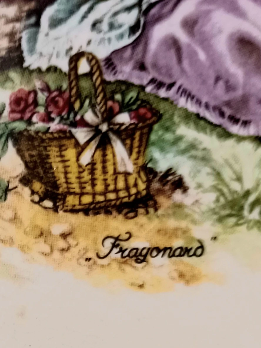 * Design: Features a detailed, romantic scene in the style of Fragonard